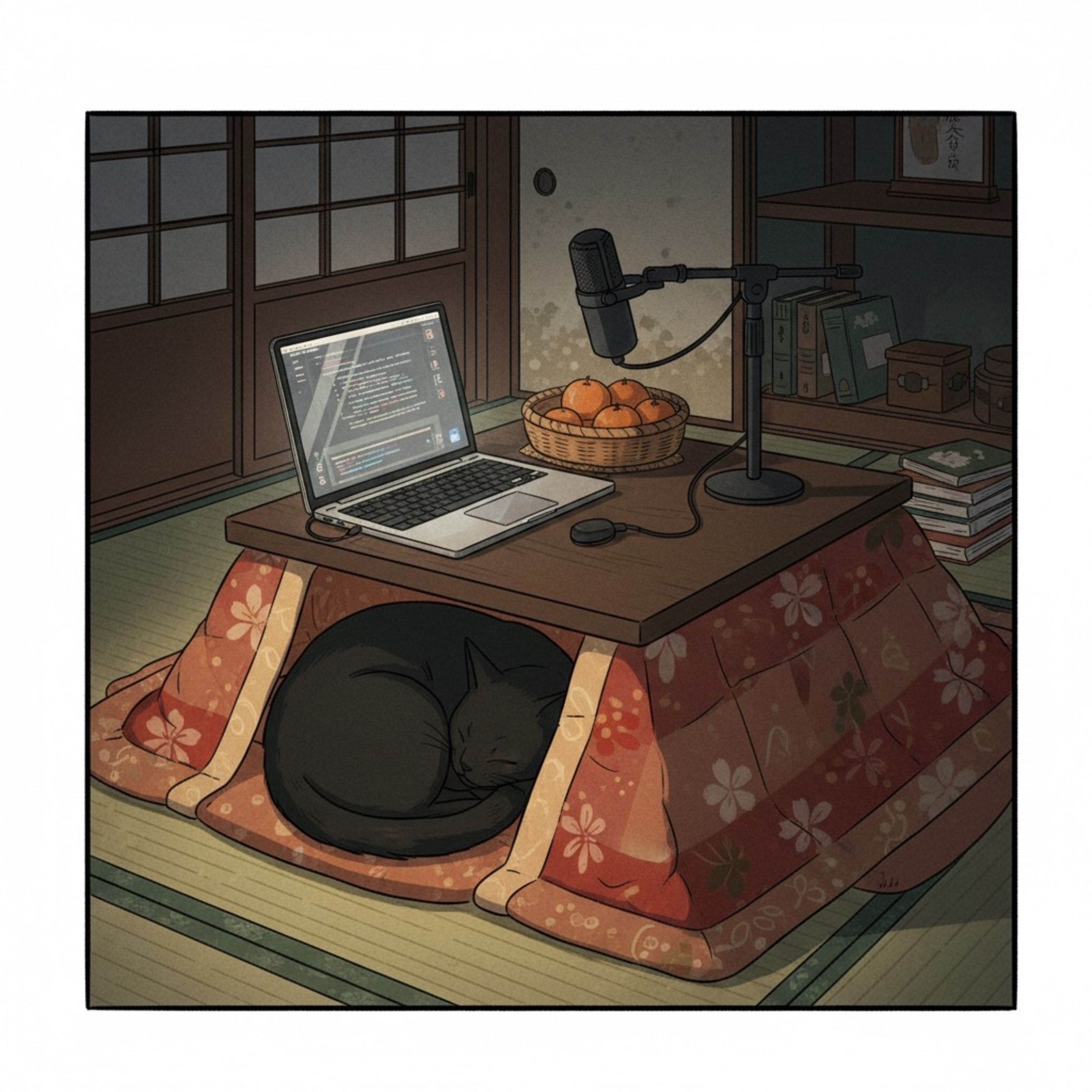 はい、そうです。ついにこたつデビューしましたね。