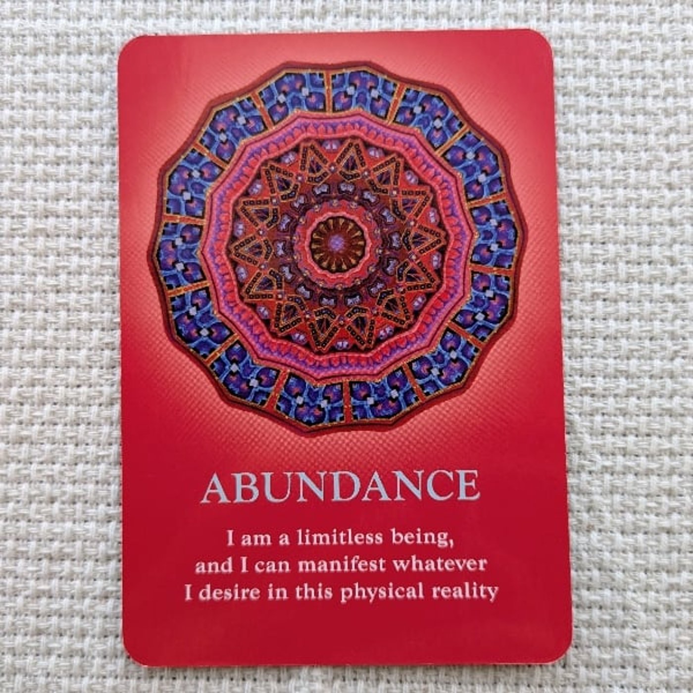どんなカードかというと、真っ赤っかの素敵な華やかなカードに、万華鏡の中を覗いているようなね、緻密で精密な、同じ形がずっとね、幾何学的に並んでいる、左右対称の綺麗なカードです。