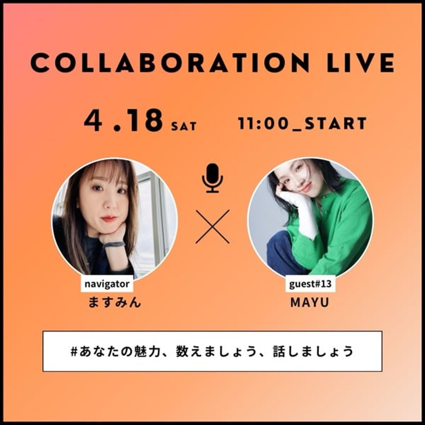 4月コラボレーションライブとお題しまして、約30名の方をゲストにお迎えしてお話をお伺いしております。