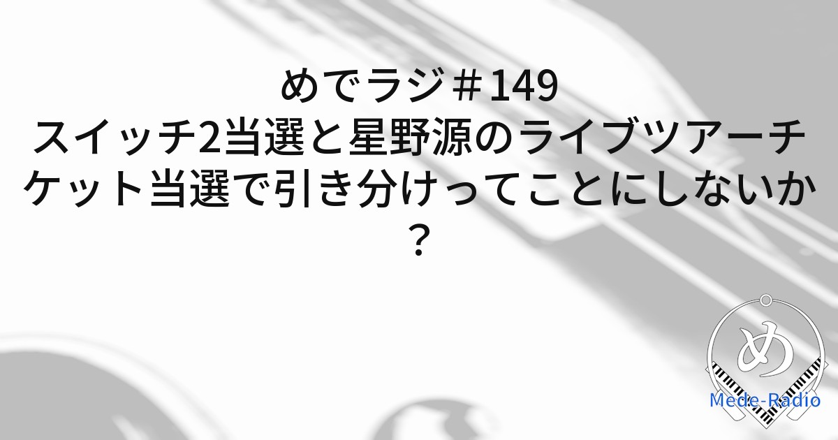 エピソード149では、Nintendo Switch 2の当選や開封プロセスについて話し合っています。特に、番組内での宝くじ的な楽しみや、製品のデザイン、機能に関する詳細が紹介されます。このエピソードでは、スイッチ2の当選と星野源のライブツアーチケットの当選について取り上げられています。リスナーからのリクエストに対する回答や、最近のYouTubeの楽しみ方についても言及されています。 エピソード149では、星野源のライブツアーのチケット抽選や、観客としての感動的な体験が語られています。また、大谷翔平選手の活躍やメジャーリーグの状況にも触れられています。このエピソードは、星野源のライブツアーの体験とスイッチ2の当選について話す内容です。特に、ライブ観賞への思いと、最近の音楽アプリやDAWにおける革新について掘り下げています。 ポッドキャストのエピソードでは、チケット当選についての話題や、星野源のニューアルバム『源』に関する感想が取り上げられています。また、TYCのYouTubeチャンネルの活動や、ライブ映像についても触れられています。
