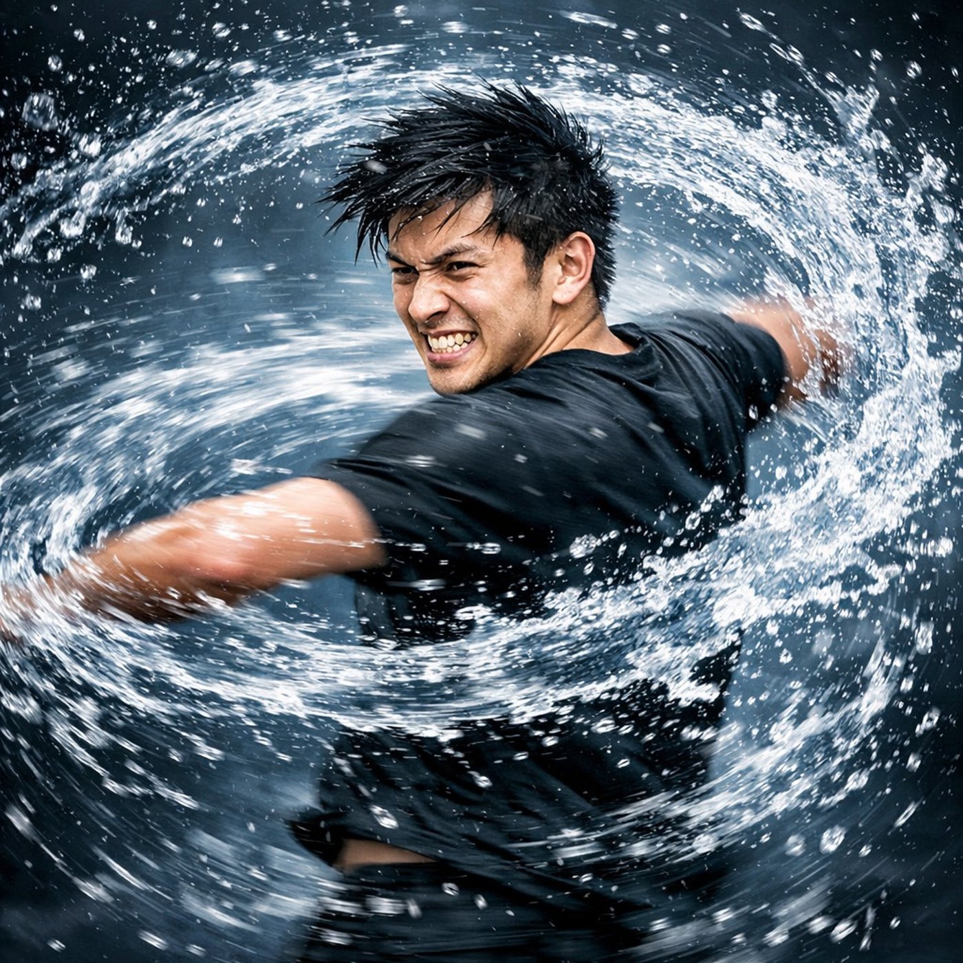 水滴がスプリンクラーみたいに飛び散って、