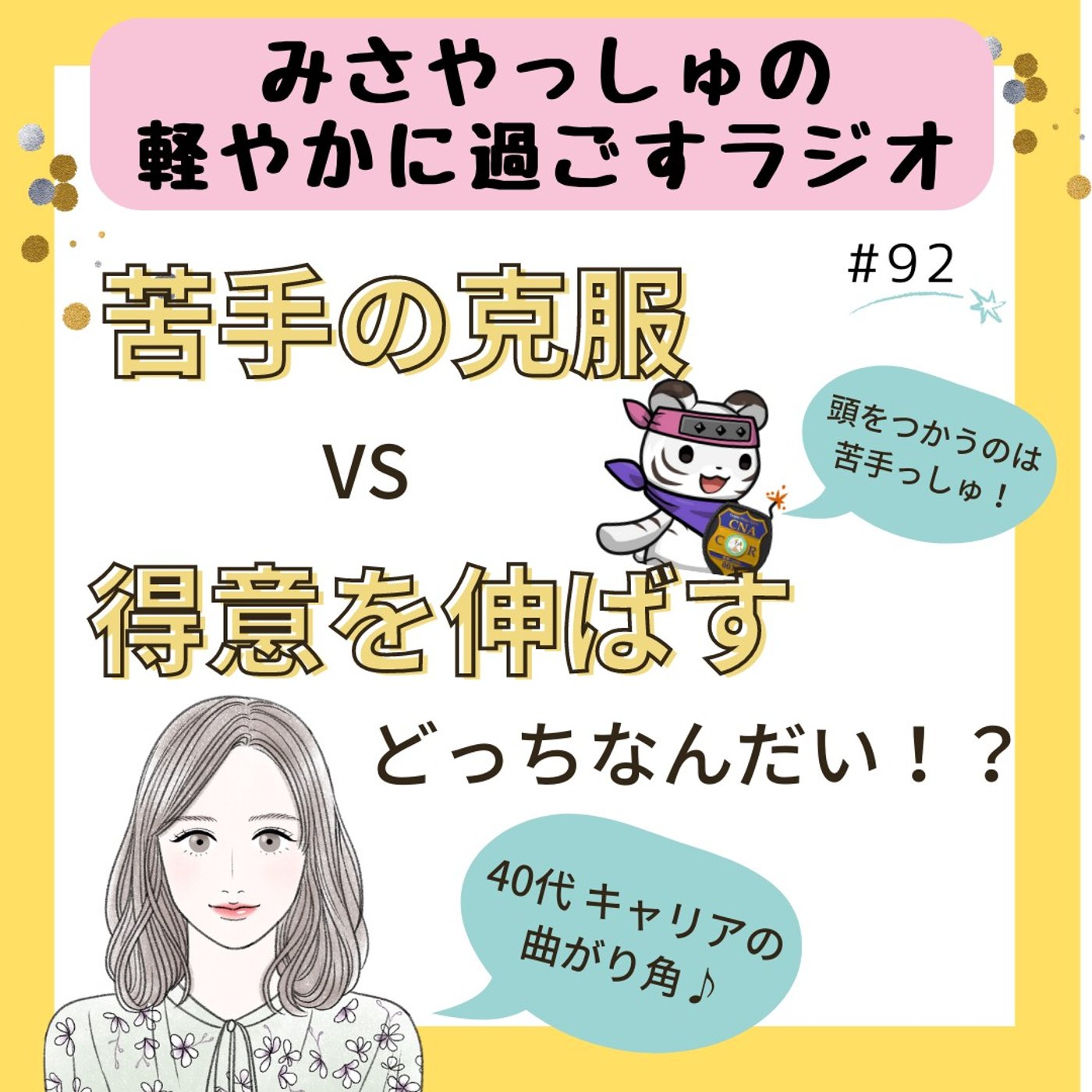 あなたはいかがでしょうか。やっぱり苦手を克服するって、やっぱり心意気は必要な時あると思うんですけどね。ただ、私もう42歳でね、この年齢になって、キャリアも折り返し地点みたいな時期に来ていると、残りの時間を何に投下していくって考えたときに、