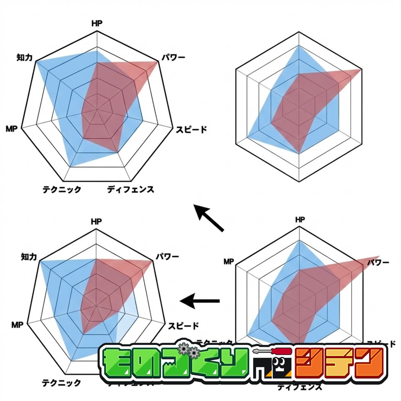 よくさ、ゲームとかで6角形のパラメーターあるじゃないですかね。いろんなパラメーターが書いてあって、6角形で表示されてるやつ。あれを6角形のうちの1個をビューンと伸ばすんじゃなくて、