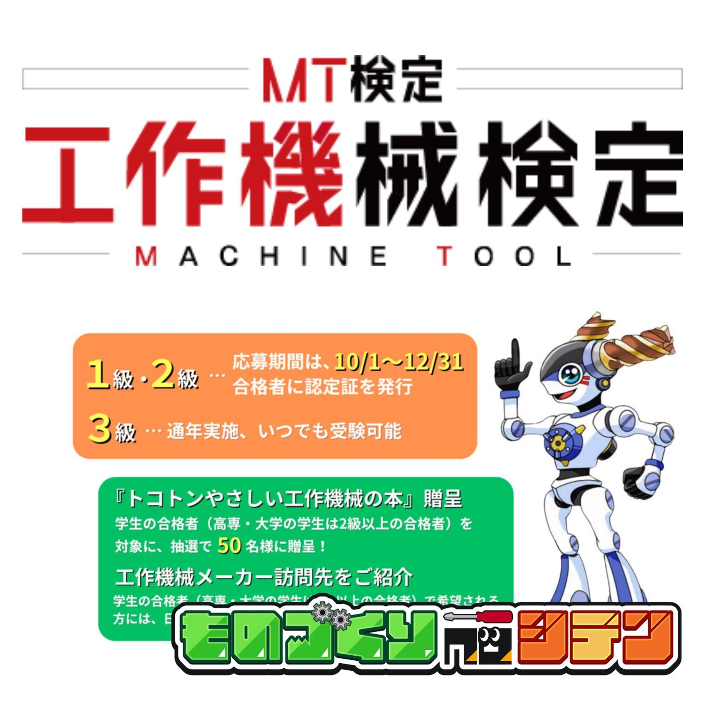 公式ホームページに書きの記載があります。 工作機械検定、MT検定は一般社団法人日本工作機械協業会が主催する検定試験で、