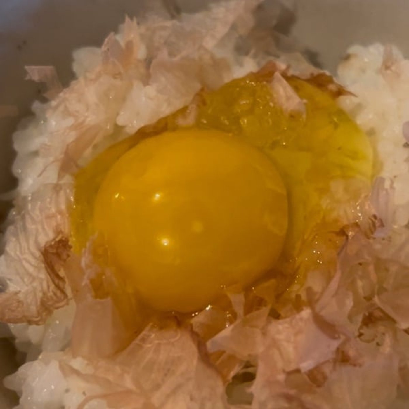 コンコンコン角をね角じゃないか面にぶつけてひびを入れてカチャッとご飯の上に垂らすんですけどその時になかなか割れないんですよ。