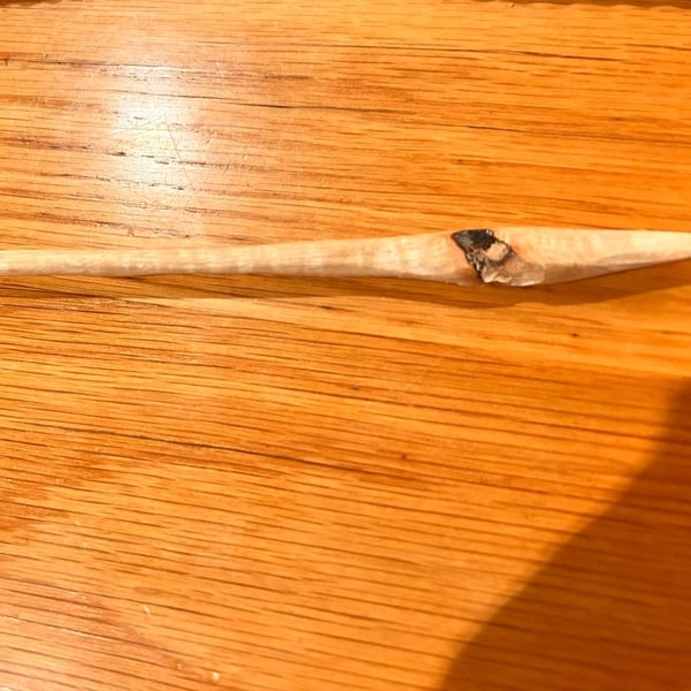 目の前にある背景に映っている写真がこの僕が作り出したお箸の1本目です まだ1本しか作れてません