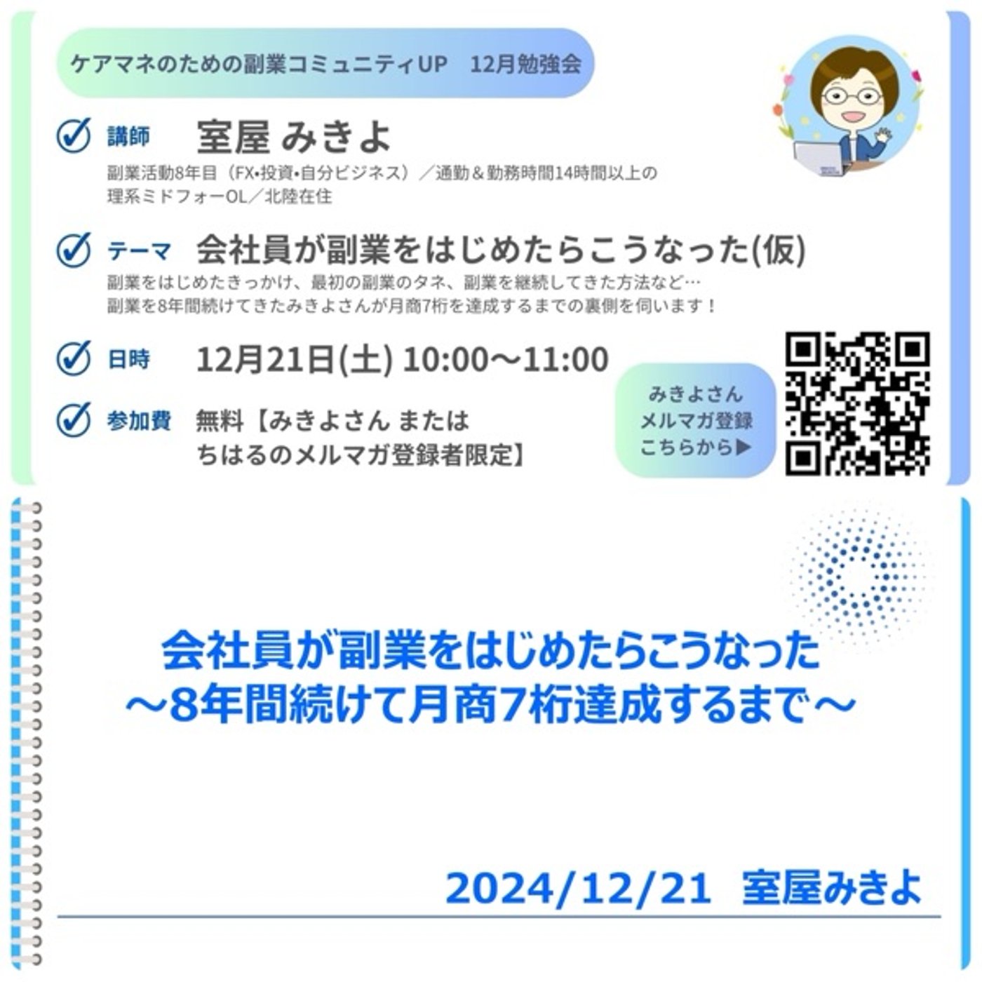 私自身が今までその8年間副業をやってて、試行錯誤したことが、こうやってね、誰かの役に立つかもしれないっていうこと。