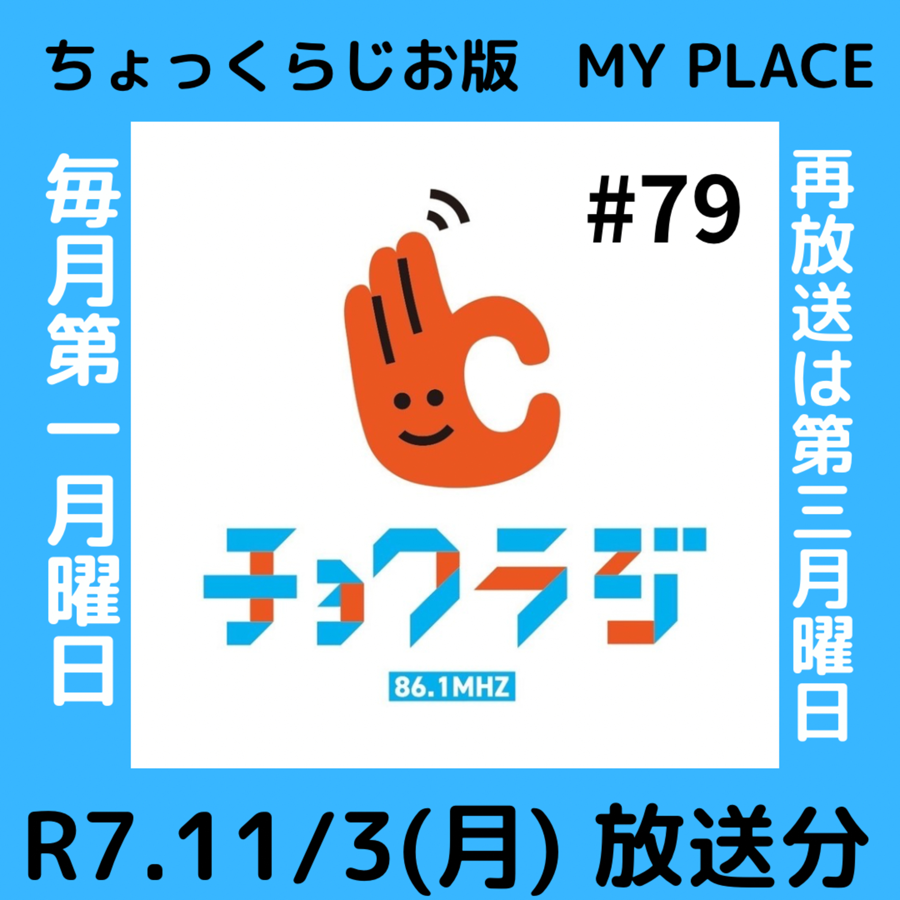 #小竹町 #MY PLACE #ちょっくラジオ #FM86.1(注)来月(12月)は、年内最後の生放送!!!!12/1(月)12:00~です。お便りは、12/1 11:00までにお願いします!!【R7.11.3 放送】(事前収録の映像)著作権の関係で、楽曲はカットしています。【ちょっくラジオのYouTube Live 映像】 (スタジオカメラ)↓https://youtu.be/D2YkJCCUpMU?si=5S8rcPAcnM68r6H_毎月第1月曜日の12:00~12:55ちょっくラジオ×MY PLACE リッスンラジオ アプリで、「ちょっくラジオ」検索して頂くと、全国どこからでもお聞きになれます。★小竹町通信↓●プレパーク、おやそだちサロン BOOK交流会、その他の講座、お問合せ↓小竹町中央公民館 0949-62-1214小竹町役場HP https://town.kotake.lg.jpちょっくラジオhttp://choku861.jp/Instagram、Twitterで、配信のお知らせなど、していますので、お気軽にフォローして下さい。メール、DMでは、お便りも募集しています。リンクまとめURLlit.link/myplace★スポンサー大募集中!!!!ちょっくラジオでもPR出来ます。スポンサーについては、【MYスポ】(マイスポ)コーナーを聞いて下さい。BASEからも、スポンサー権利をご購入出来ます。リンクまとめURLから、BASEに行けます。