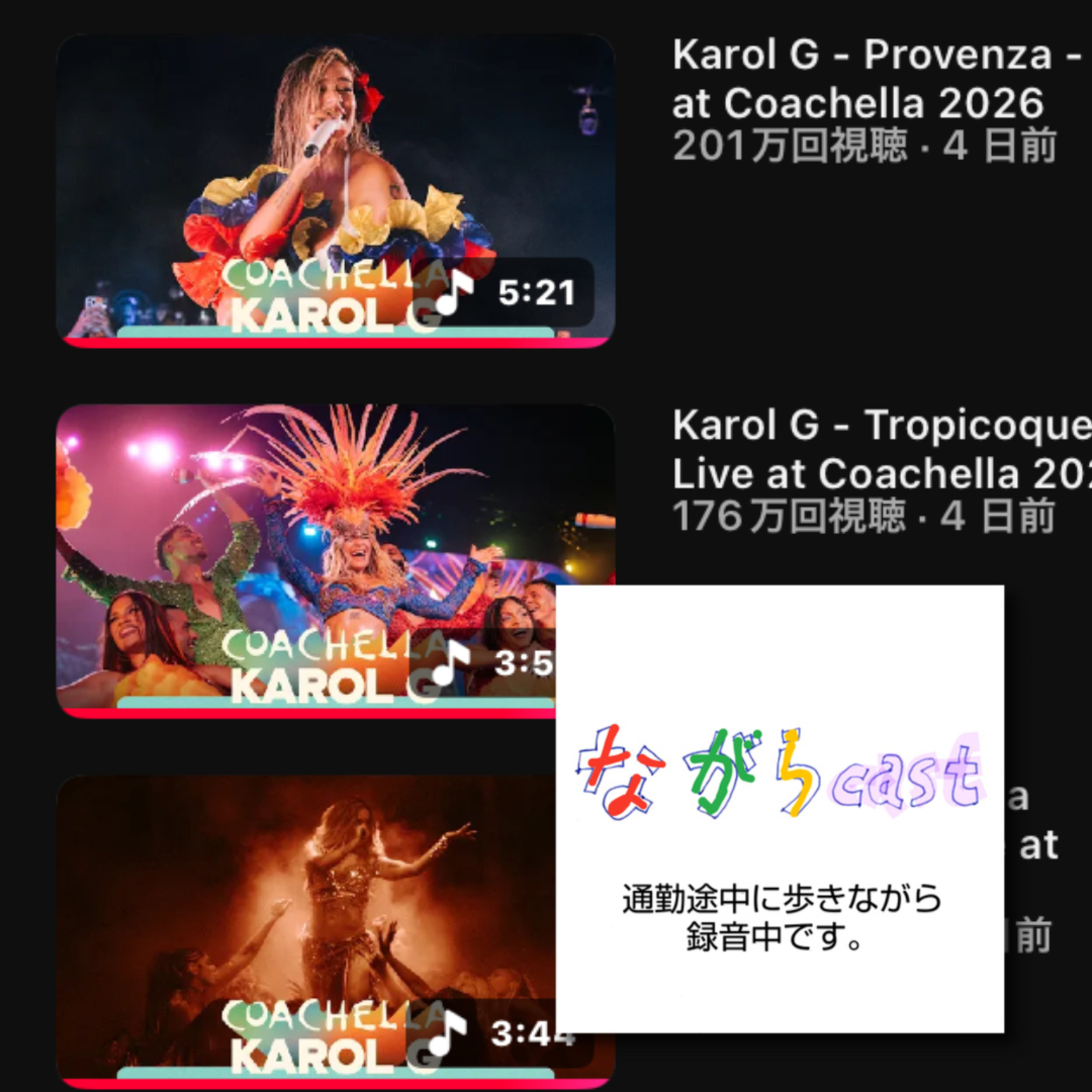 まあなんかね、飽きさせないすごい工夫がされてましたね。はい、そんなわけで今日はコーチェラ2026という音楽祭のメインステージ、Day3のカロル・ジーのステージをね、たまたま見たんですが、結局ね、もう途中から見始めてフィナーレまで。