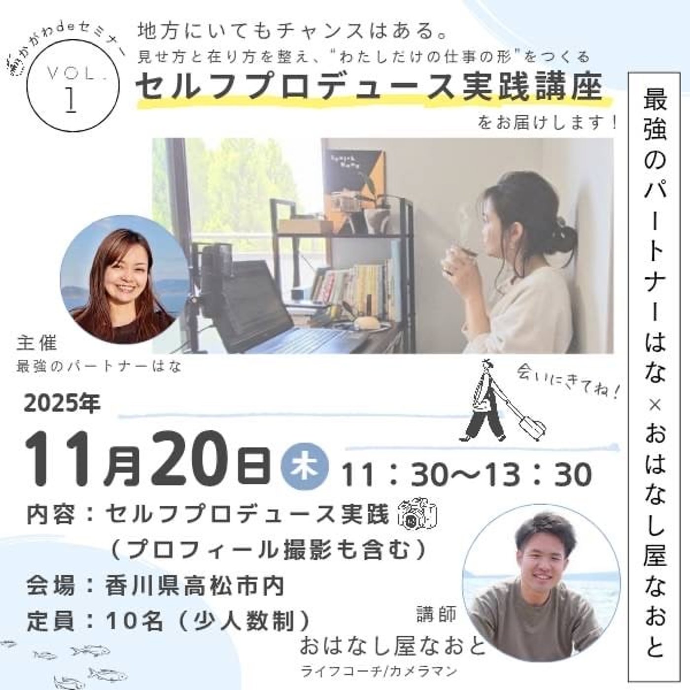 やっぱり人間がどうしても伝えたいことだけを伝えるとですね、落ち度が出てくるというか、例えば今、今回またサムネイルにしていると思うんですけど、高松、香川県高松市の方で開催するセミナーの内容の中で、僕と花さんは伝えたいエモーションな部分を、とにかくAIとか関係なく人間と人間で打ち合わせて文章っていうのを作っているんですね。