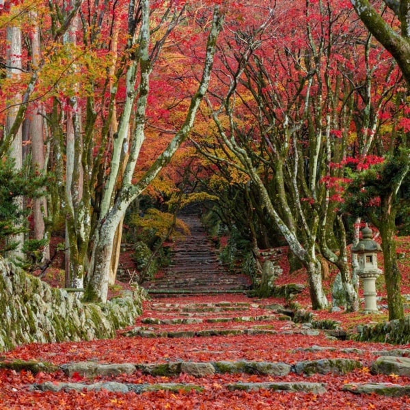 この階段があって、そしてその両脇にもみじの木が生えていて、そしてその階段にもみじの落ち葉がいっぱい積もっている、