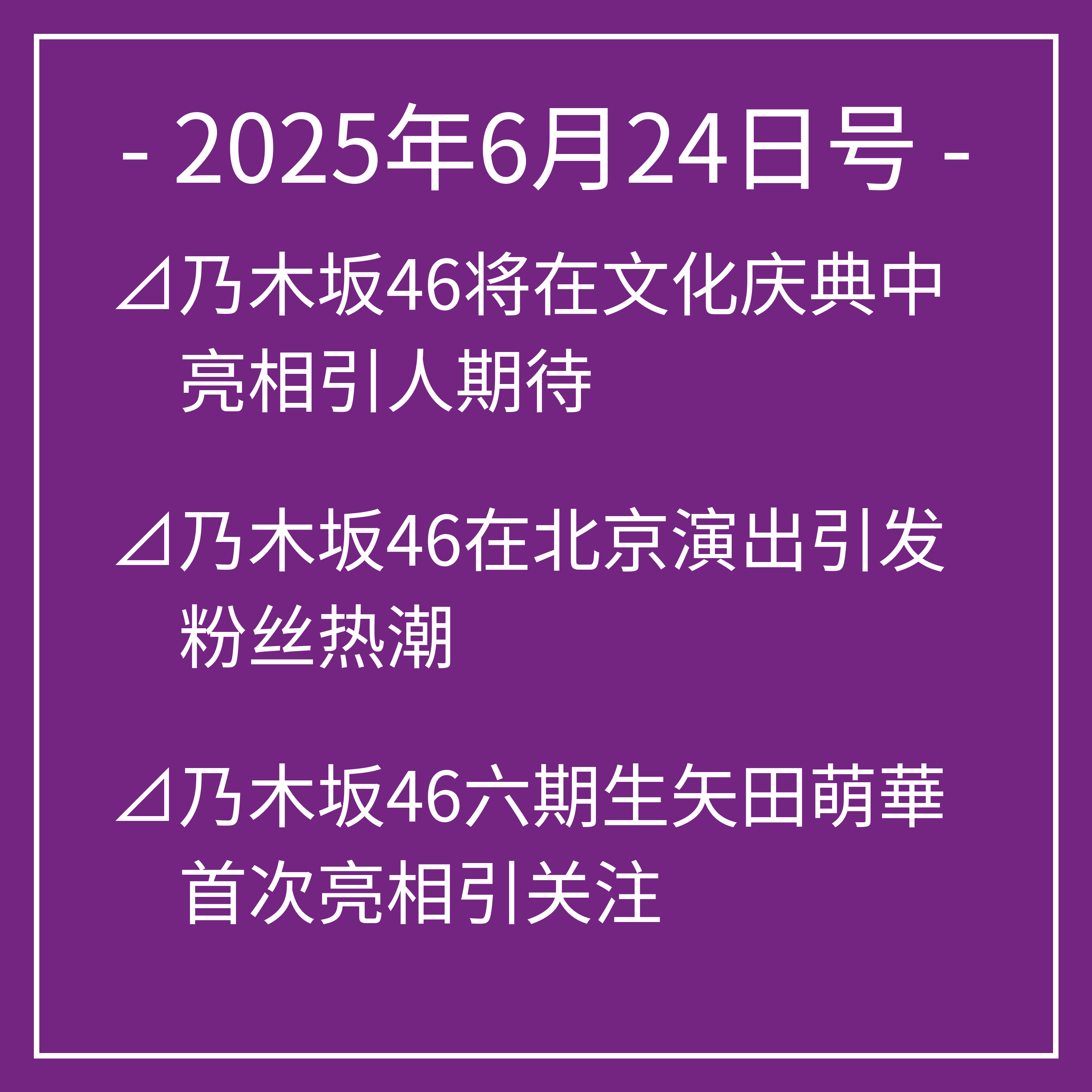6月24日号⊿乃木坂46将在文化庆..