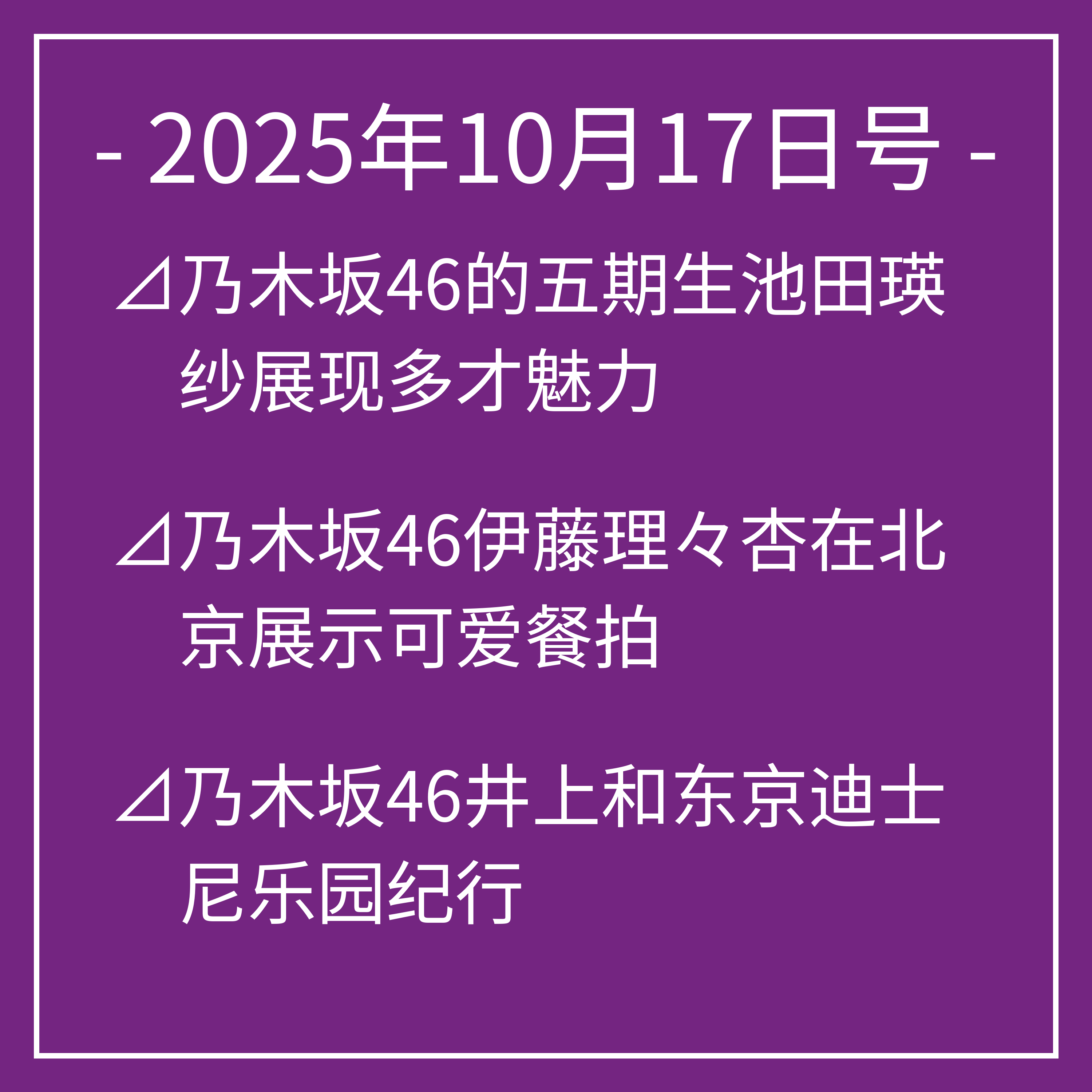 接下来我将介绍今天10月17日乃木坂46的行程安排⊿