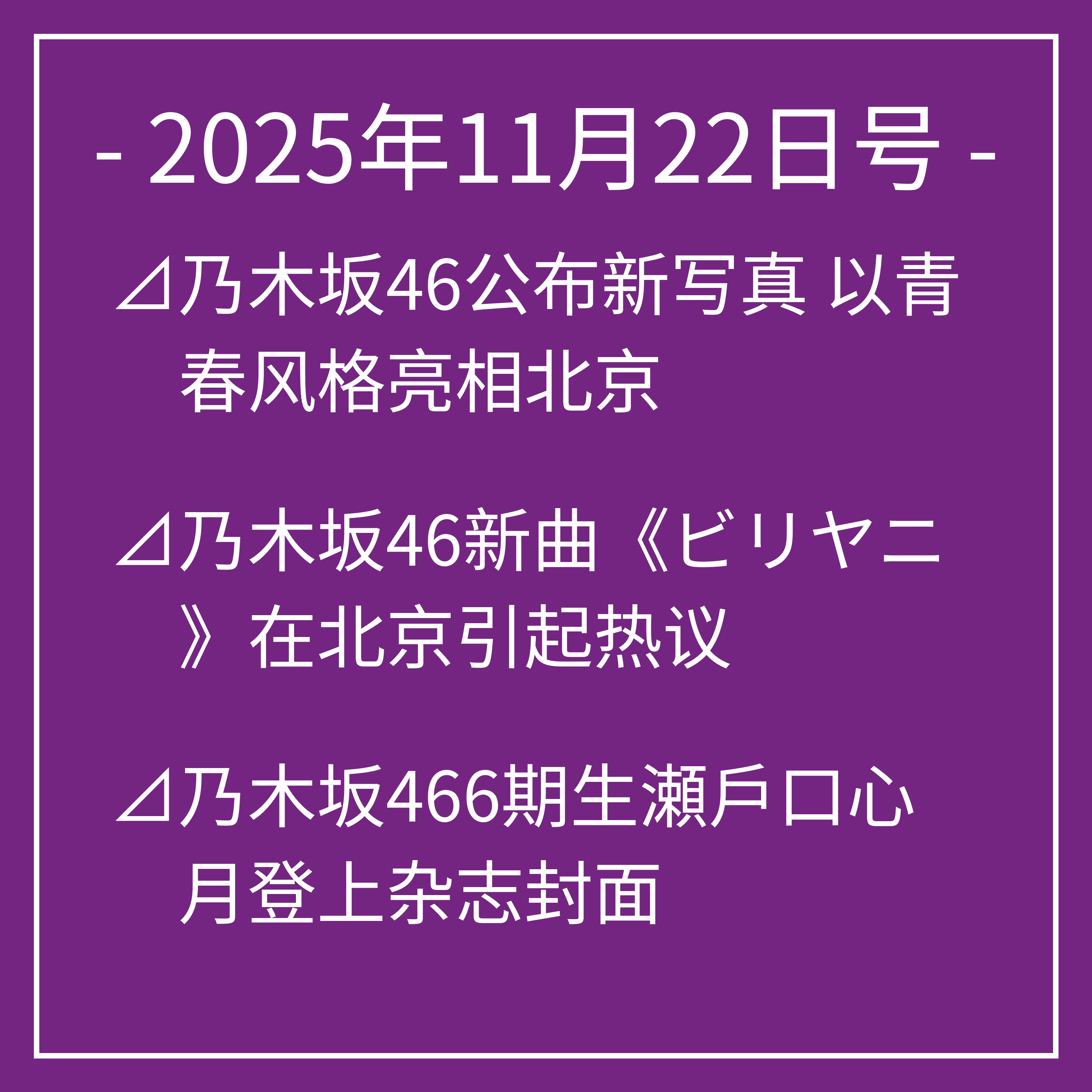 以上为我们今天关于乃木坂46的头条新闻⊿