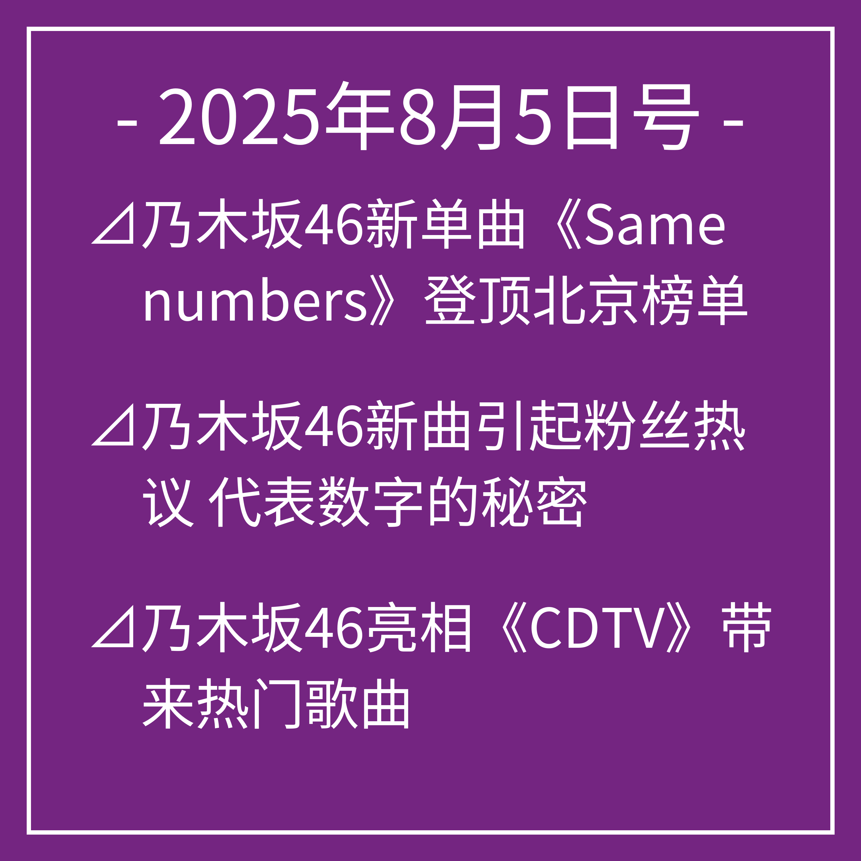 ⊿乃木坂46新单曲《Same numbers》登顶北京榜单