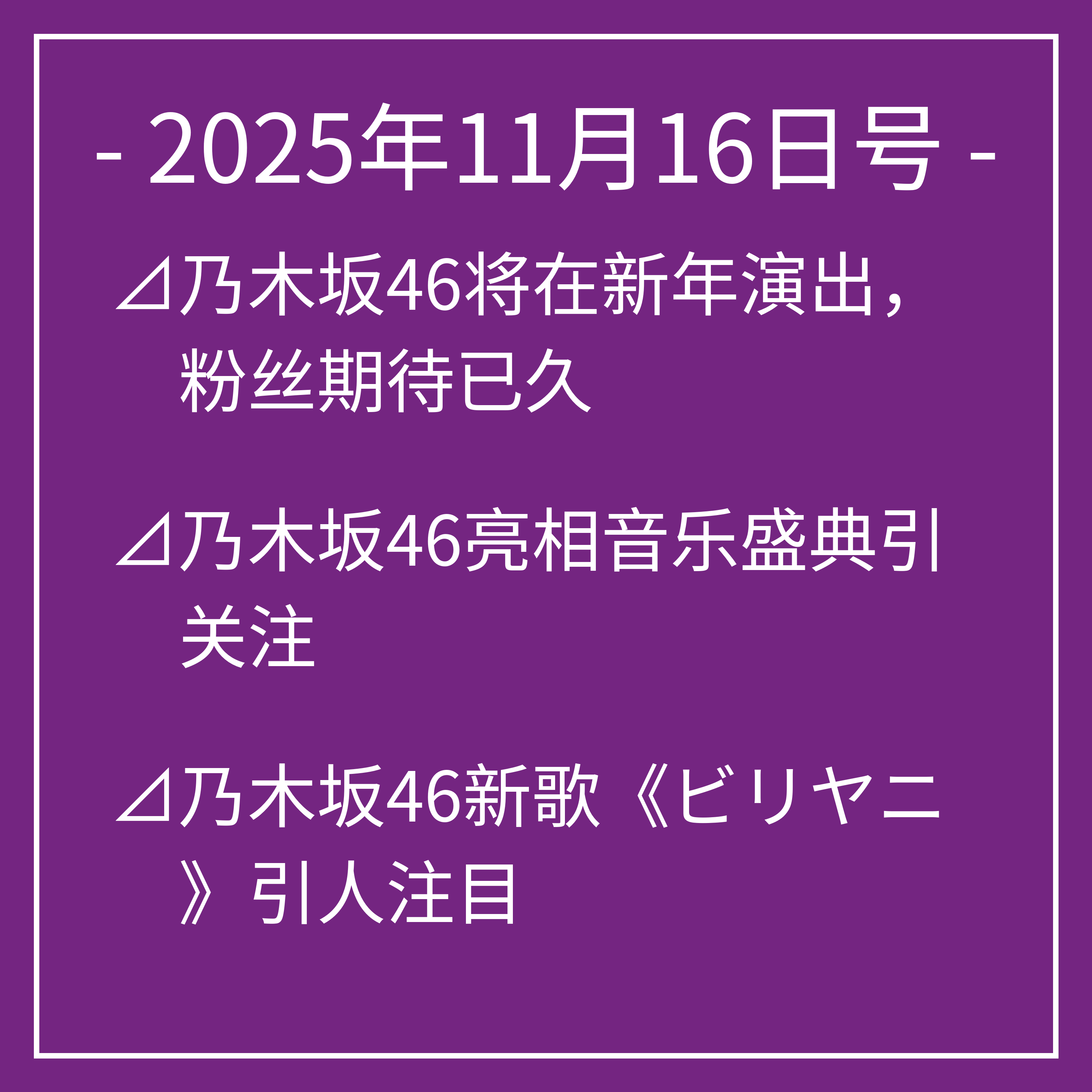 以上为我们今天关于乃木坂46的头条新闻。