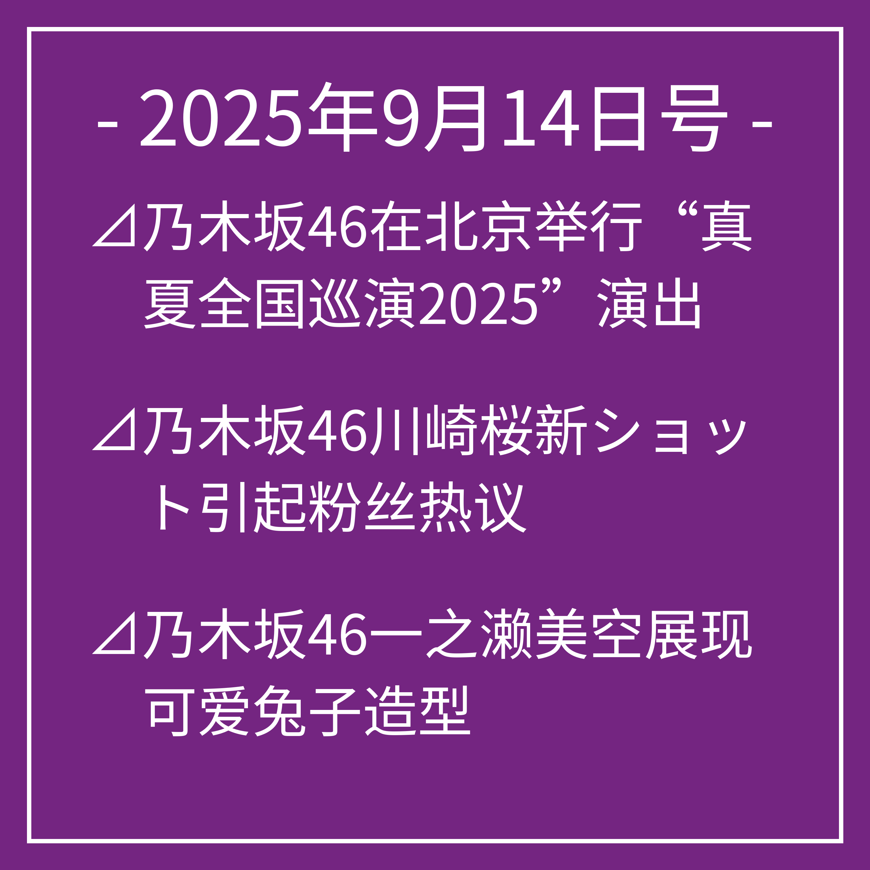 以上为我们今天关于乃木坂46的头条新闻。