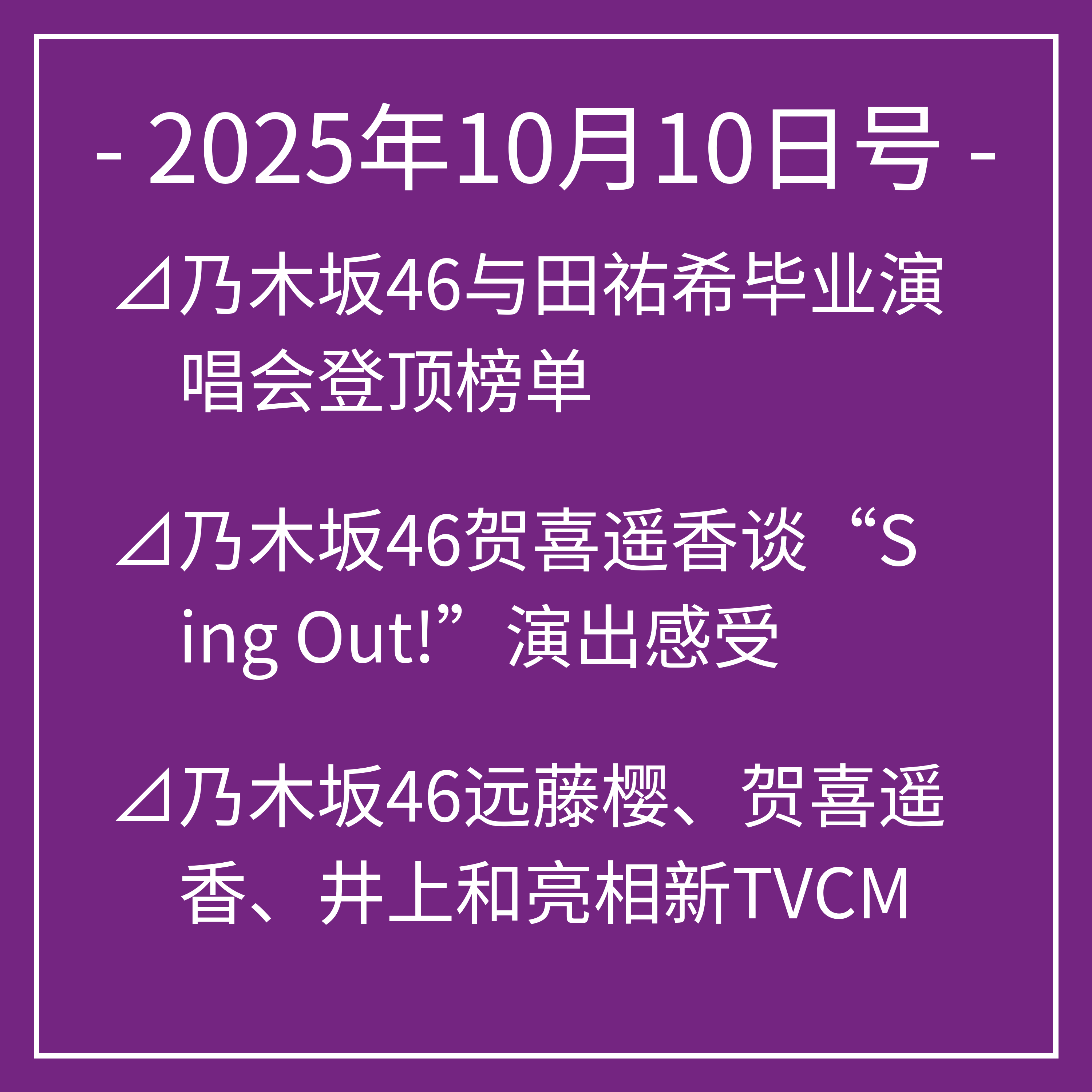 以上为我们今天关于乃木坂46的头条新闻。
