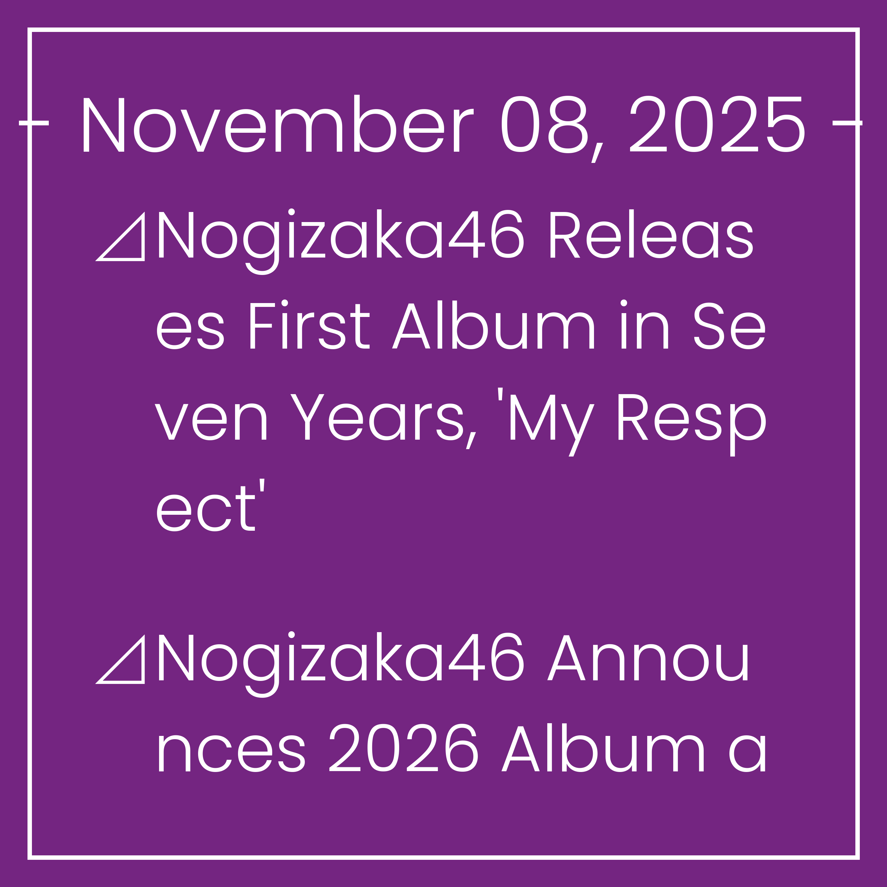 groups. Nogizaka46 Announces 2026 Album and Live Tour⊿Nogizaka46 Revealed They'll Drop a New