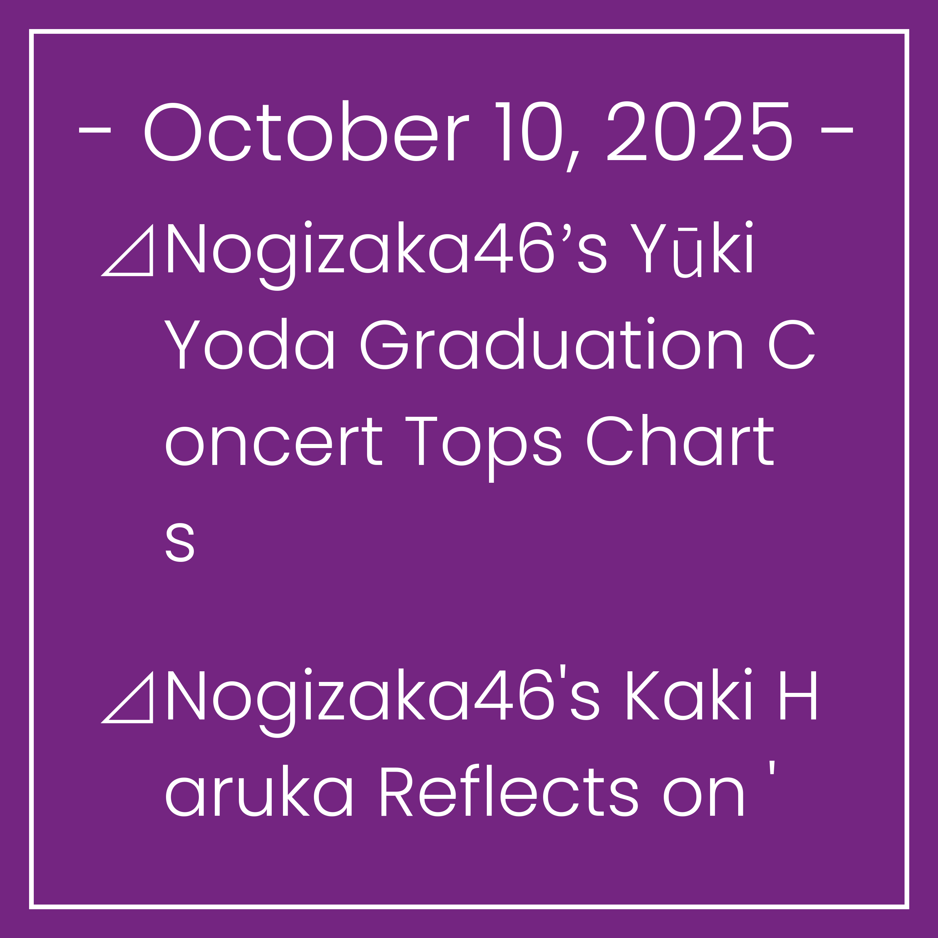 ⊿Nogizaka46’s Yūki Yoda Graduation Concert Tops Charts