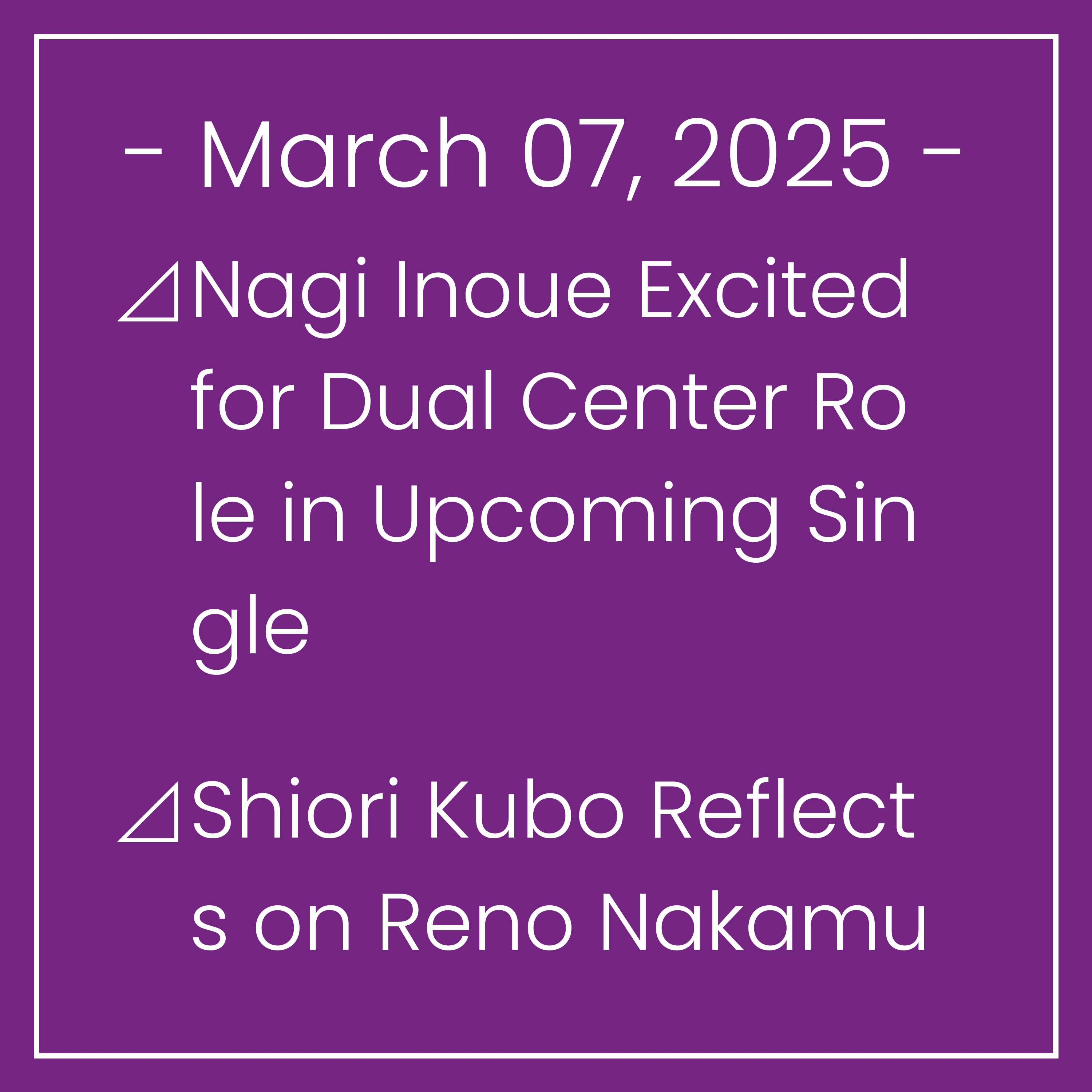 ⊿Nagi Inoue Excited for Dual Center Role in Upcoming Single