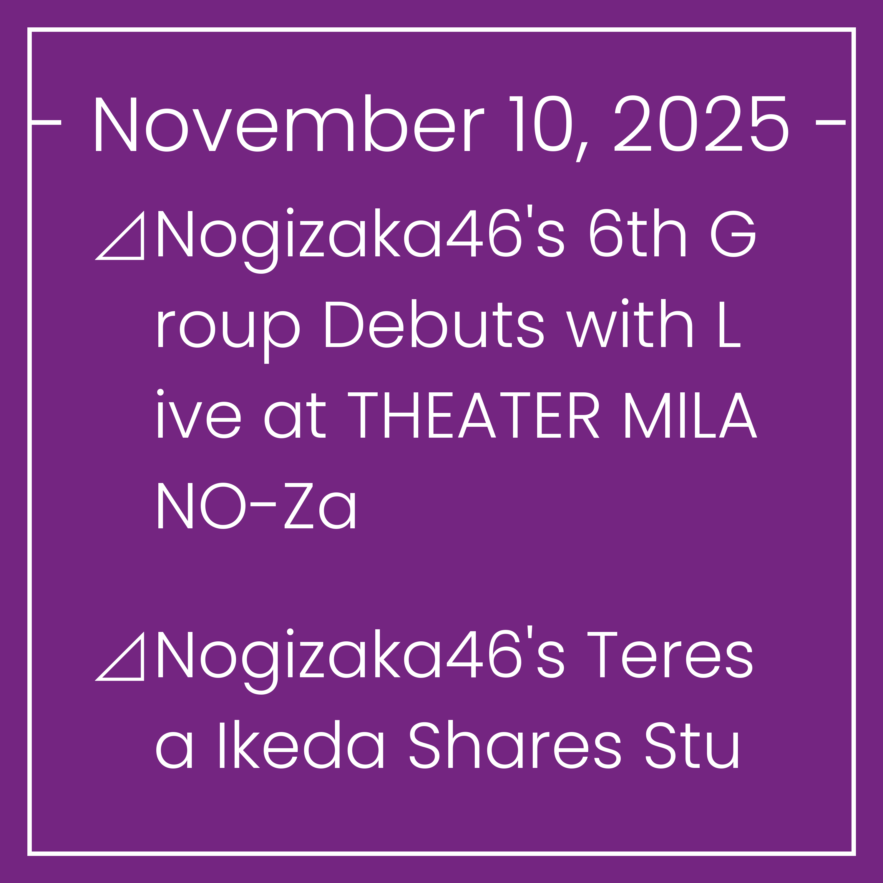⊿Nogizaka46's 6th Group Debuts with Live at THEATER MILANO-Za