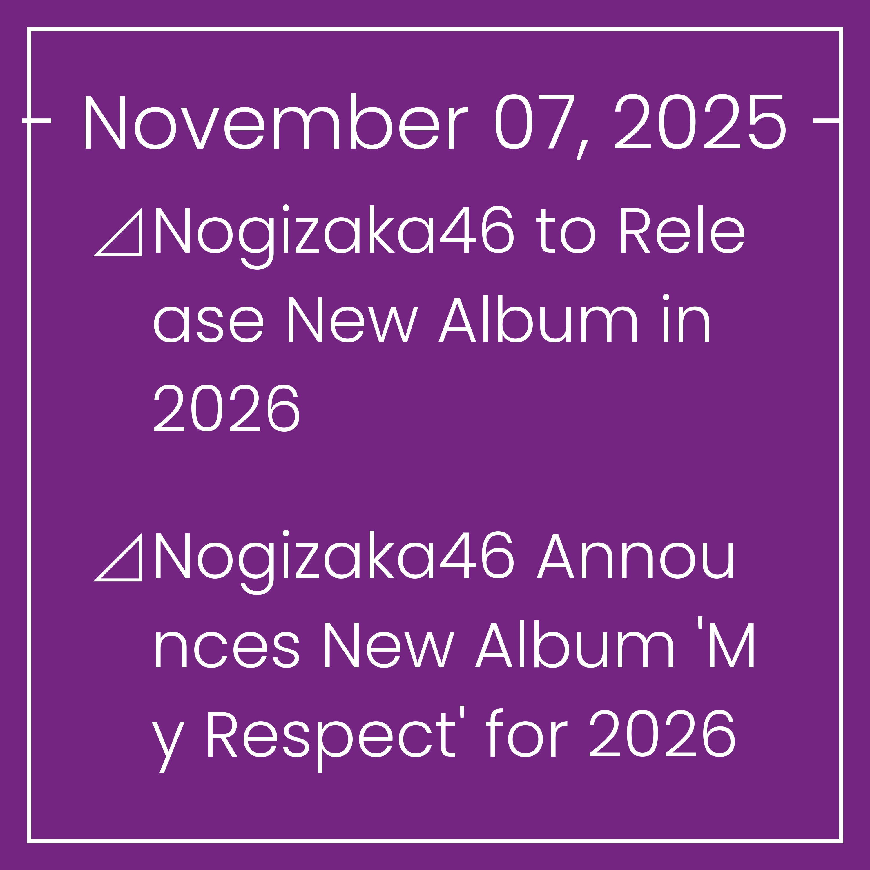 ⊿Nogizaka46 to Release New Album in 2026