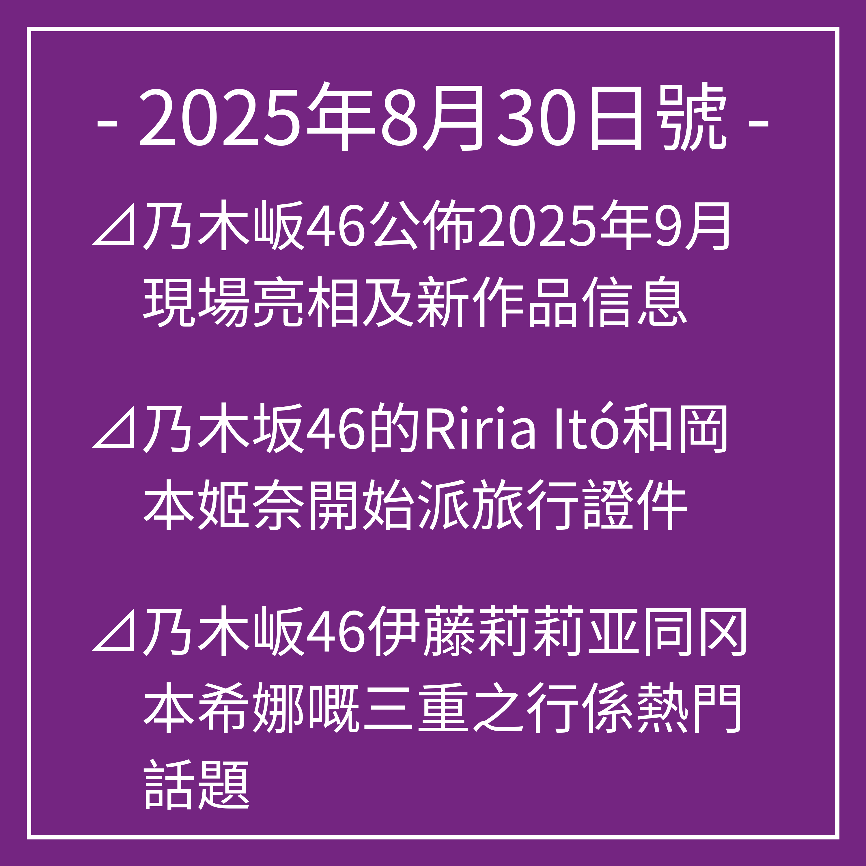 ⊿乃木岅46公佈2025年9月現場亮相及新作品信息