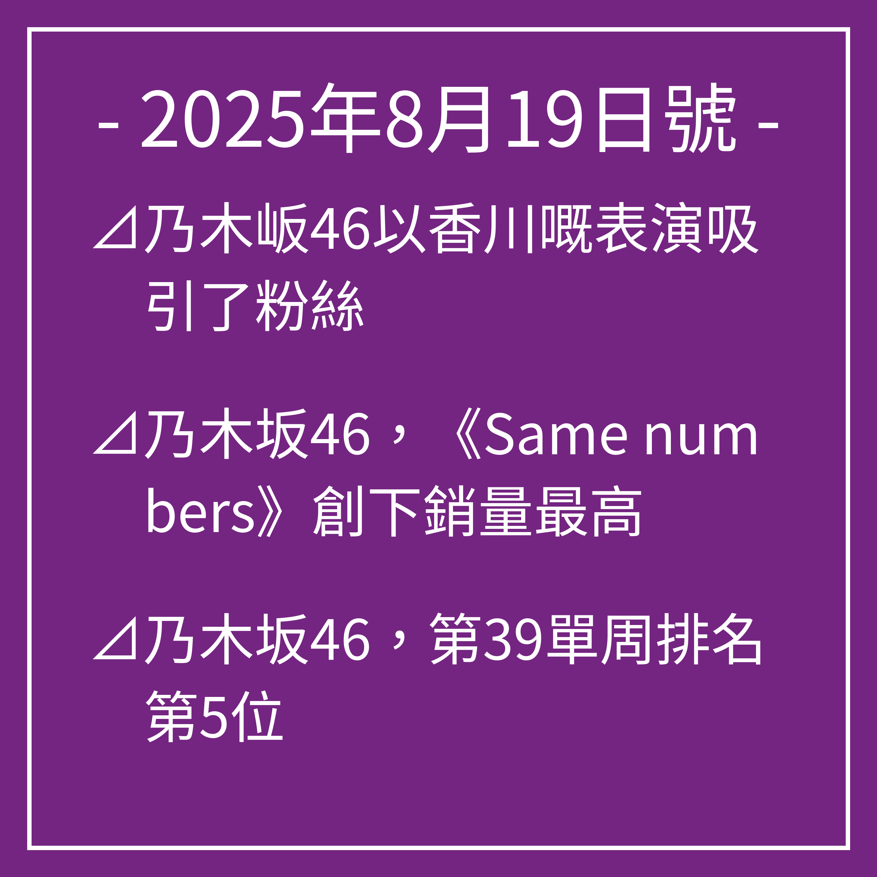 8月19日號⊿乃木岅46以香川嘅表..