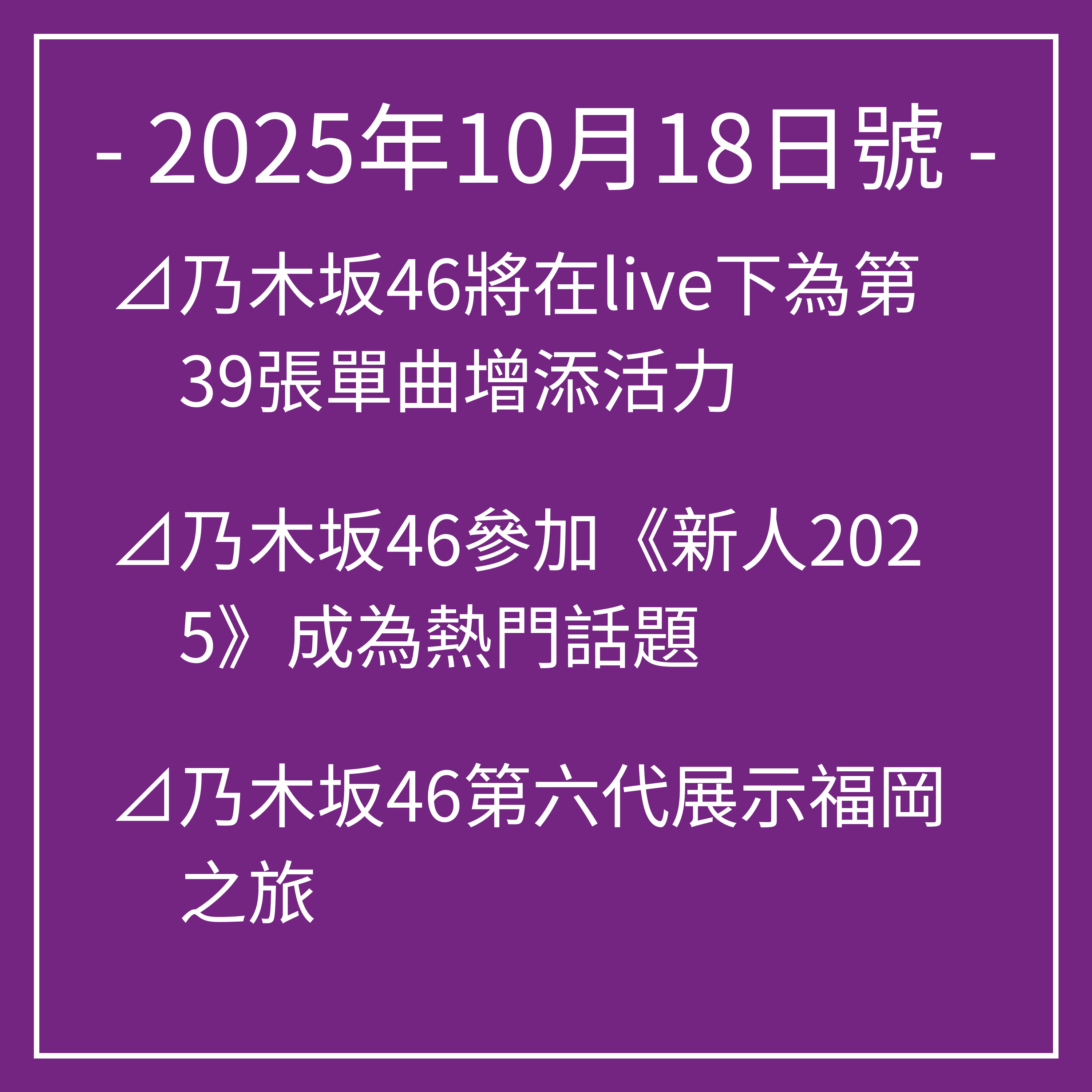 以上就是我們今天關於乃木坂46的頭條新聞