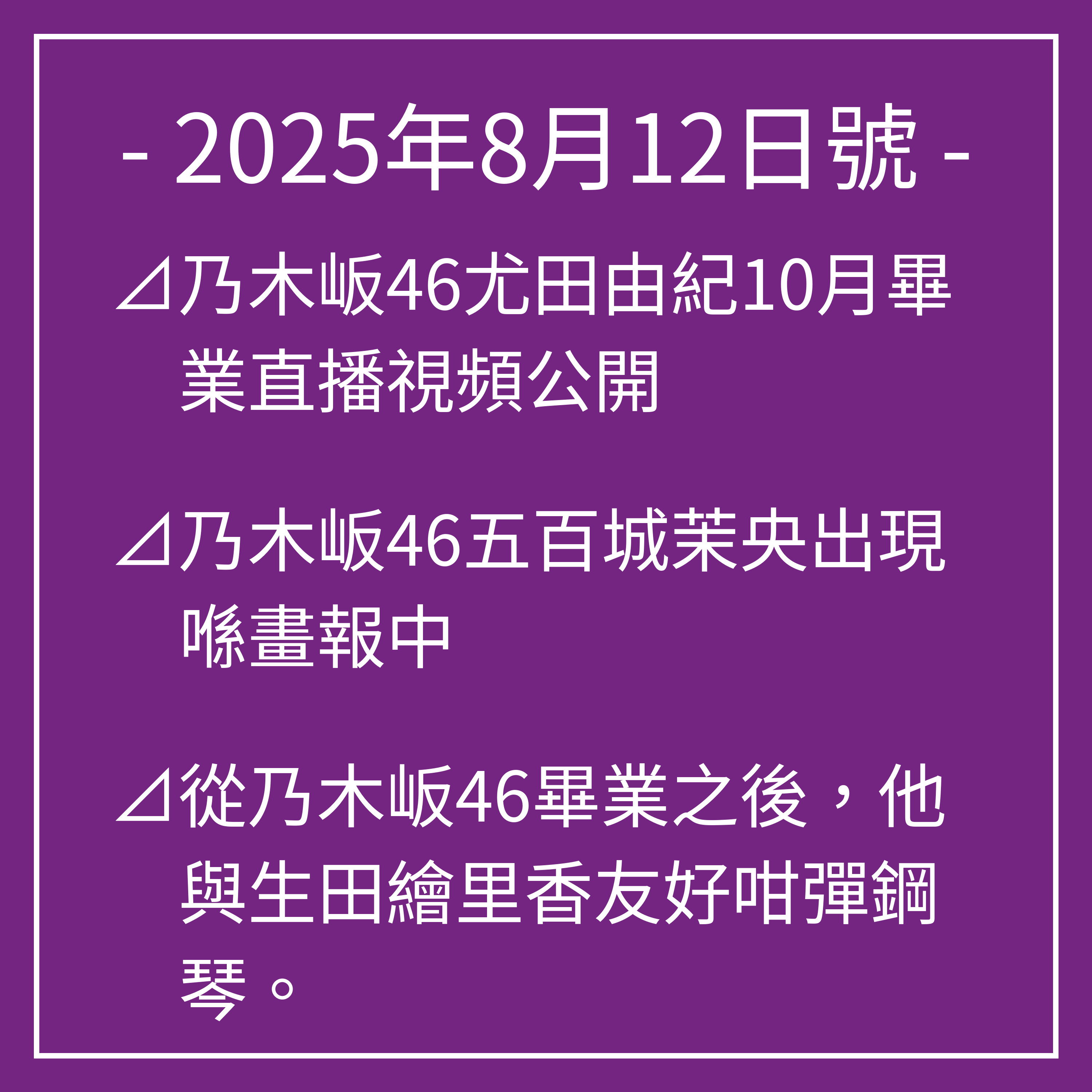 以上係關於乃木坂46嘅消息報導
