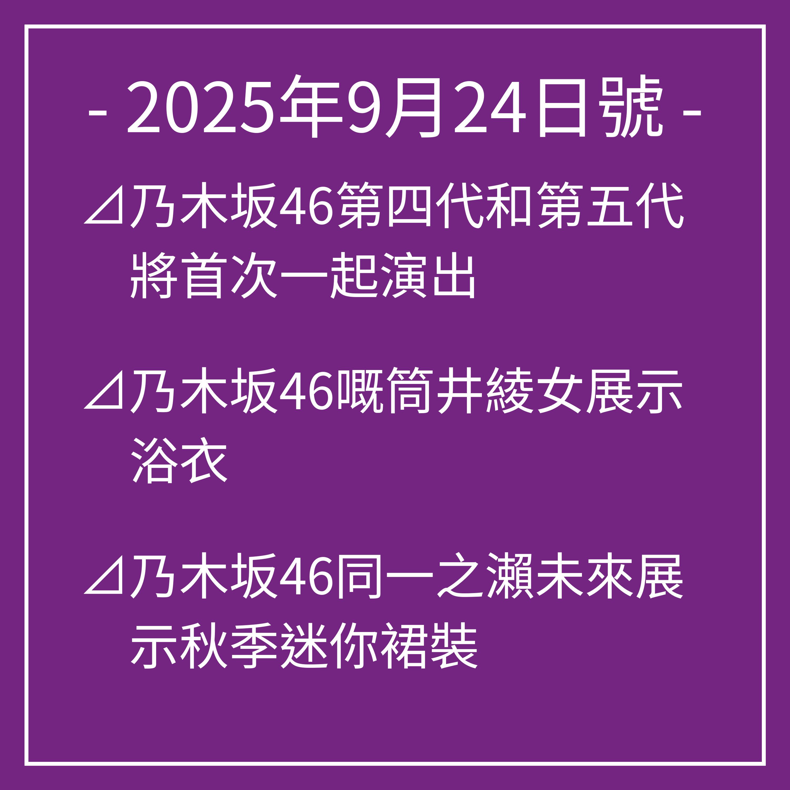 跟住我哋將會同大家分享一啲來自乃木坂46嘅最新資訊