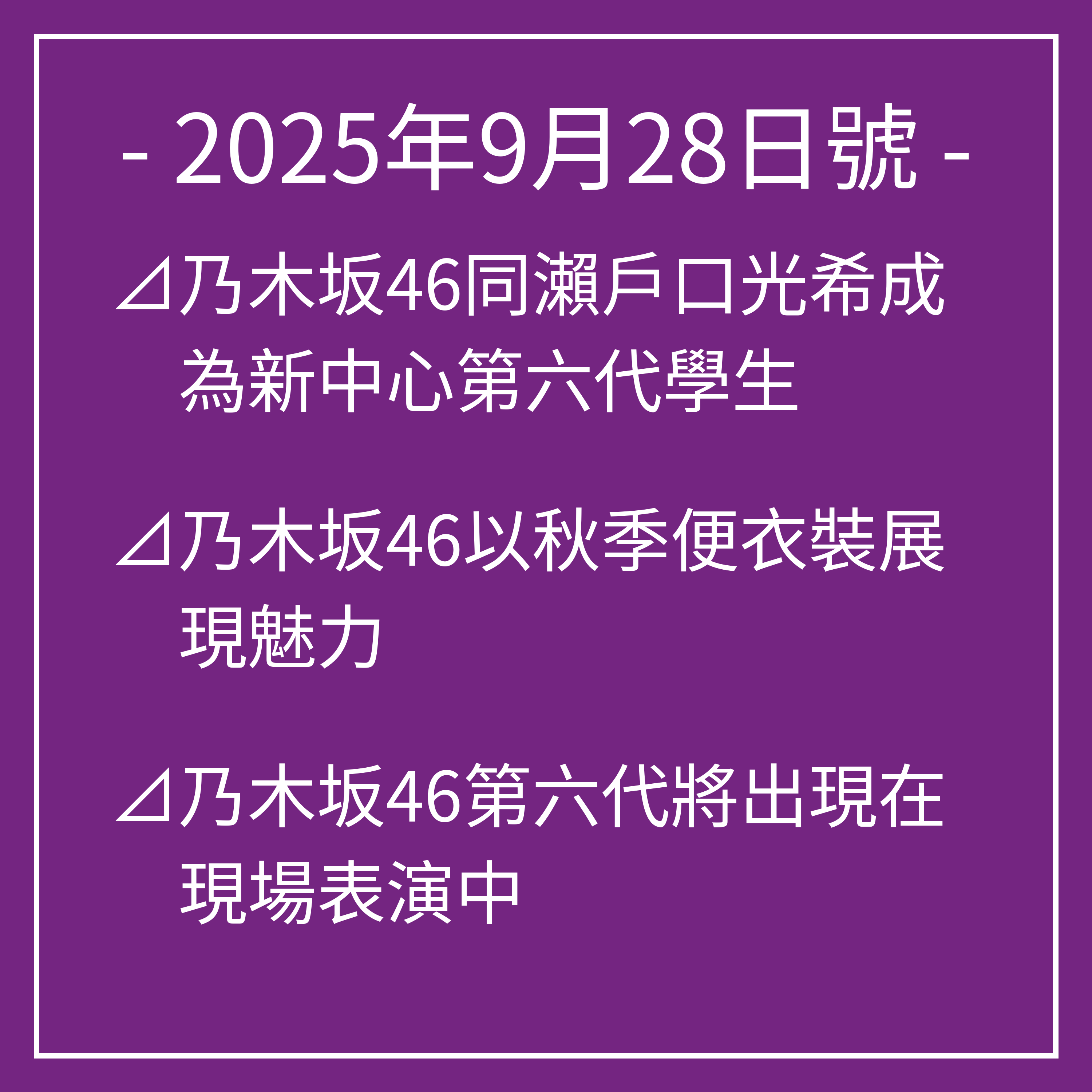 以上就是我們今天關於乃木坂46的頭條新聞