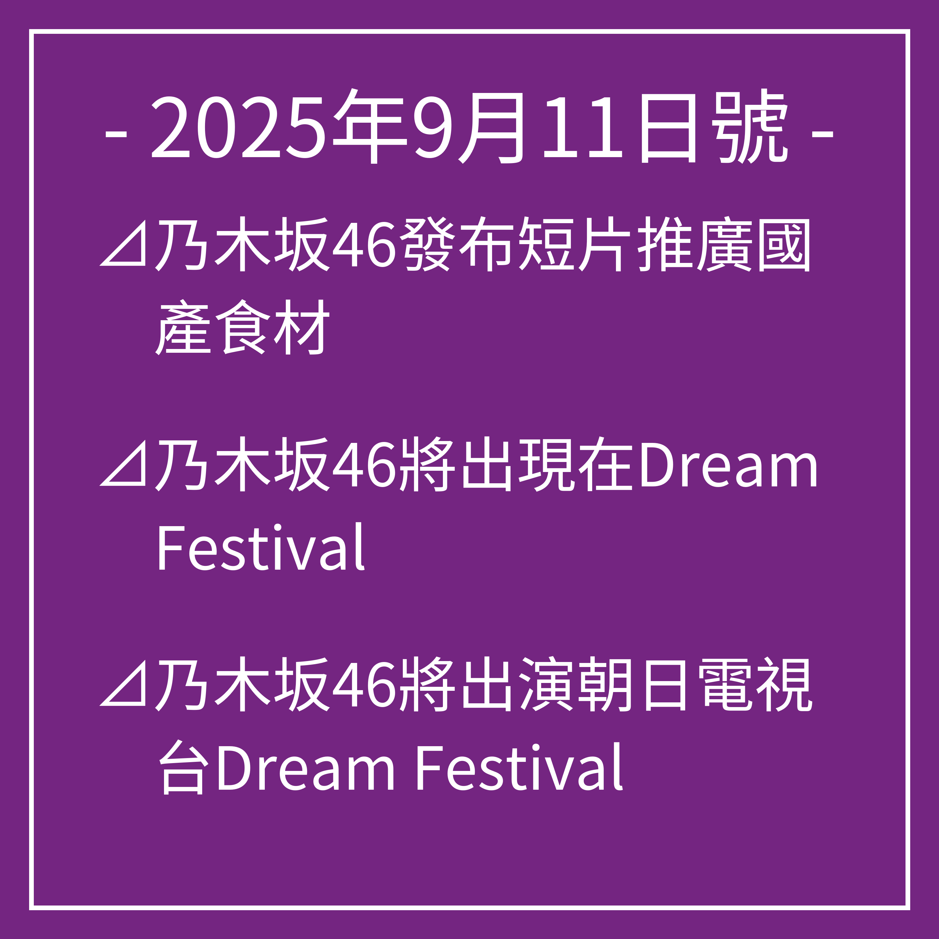 接著,我們將會和大家分享一些來自乃木坂46的最新資訊
