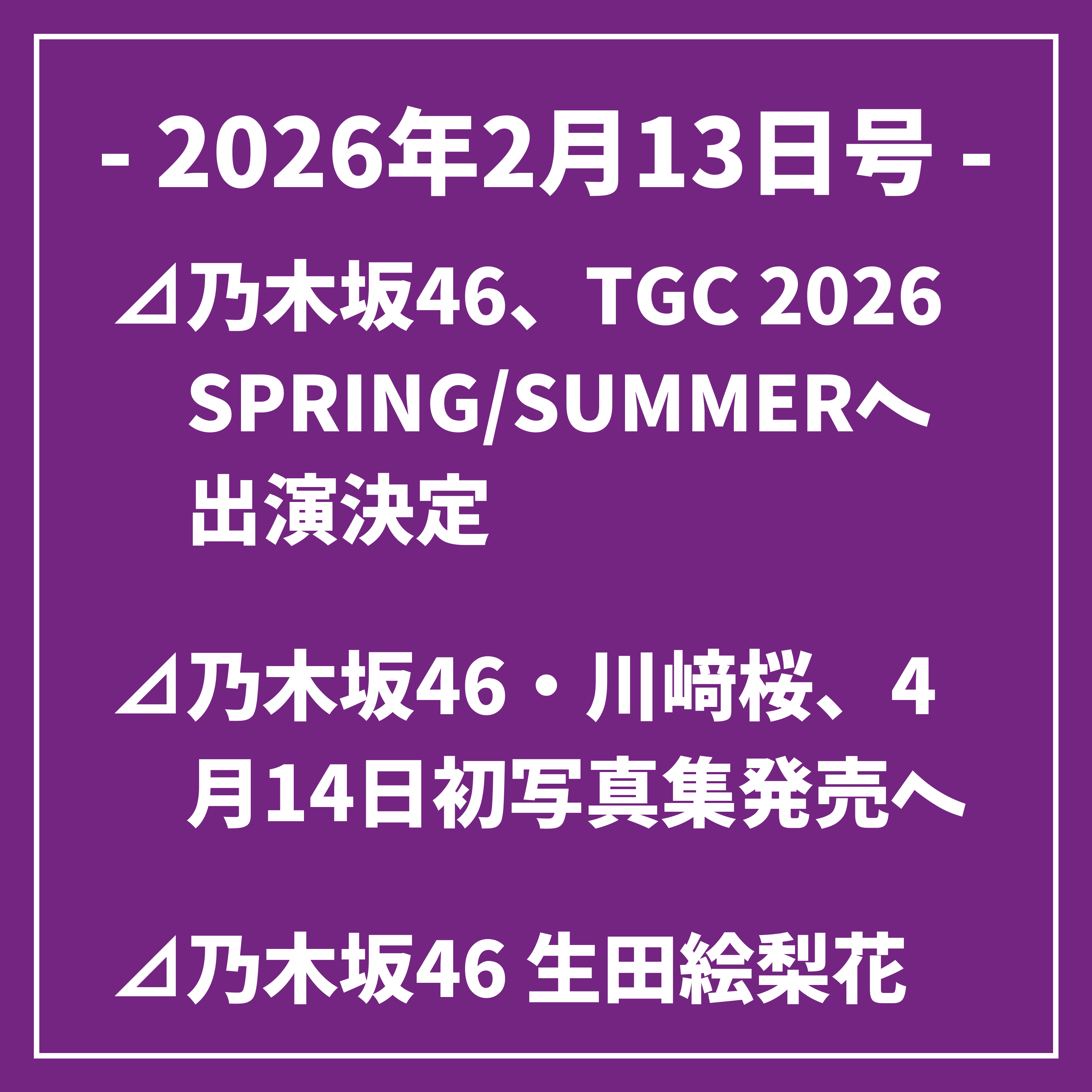 以上、本日の乃木坂46に関するトップニュースをお届けしました。