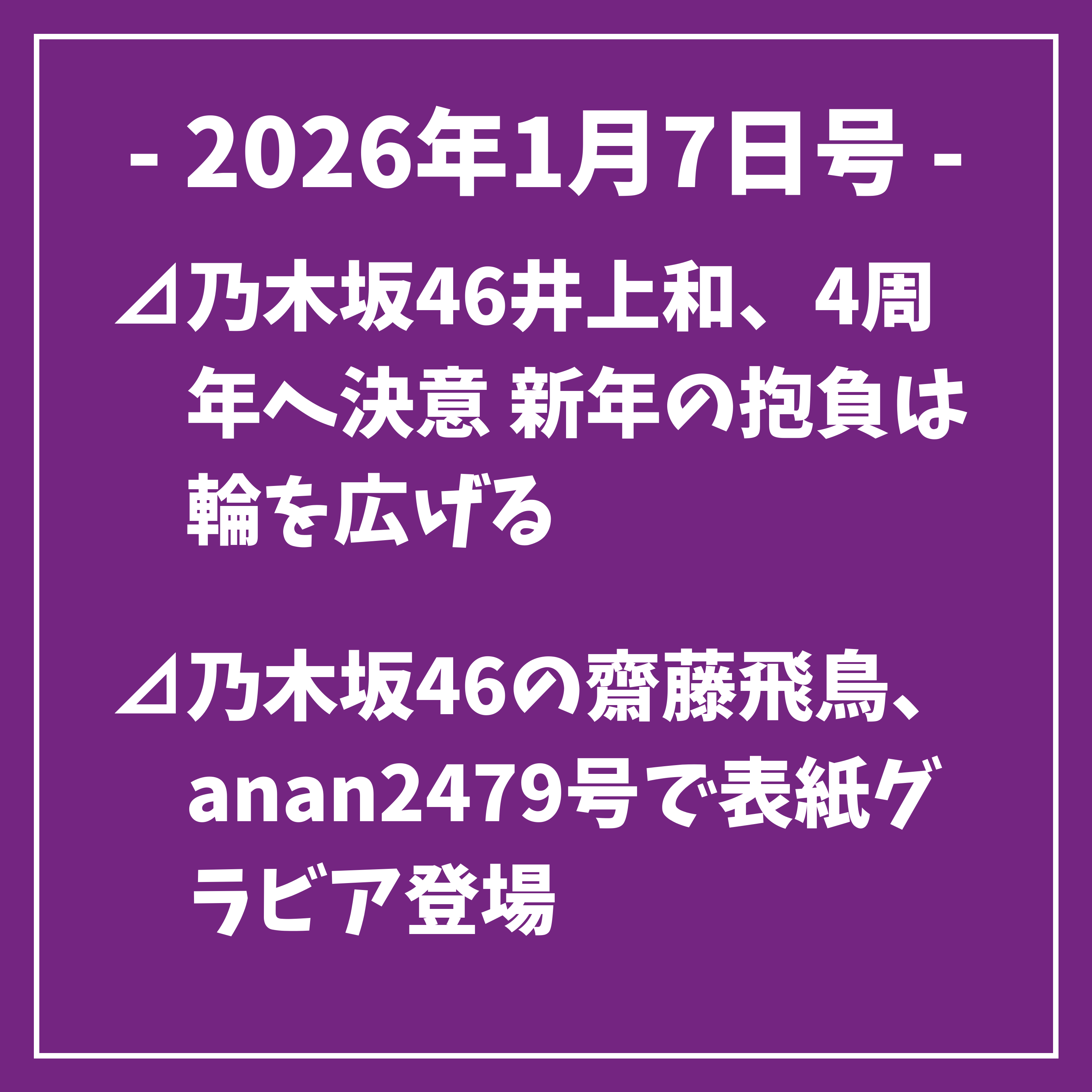 以上、本日の乃木坂46に関するトップニュースをお届けしました。