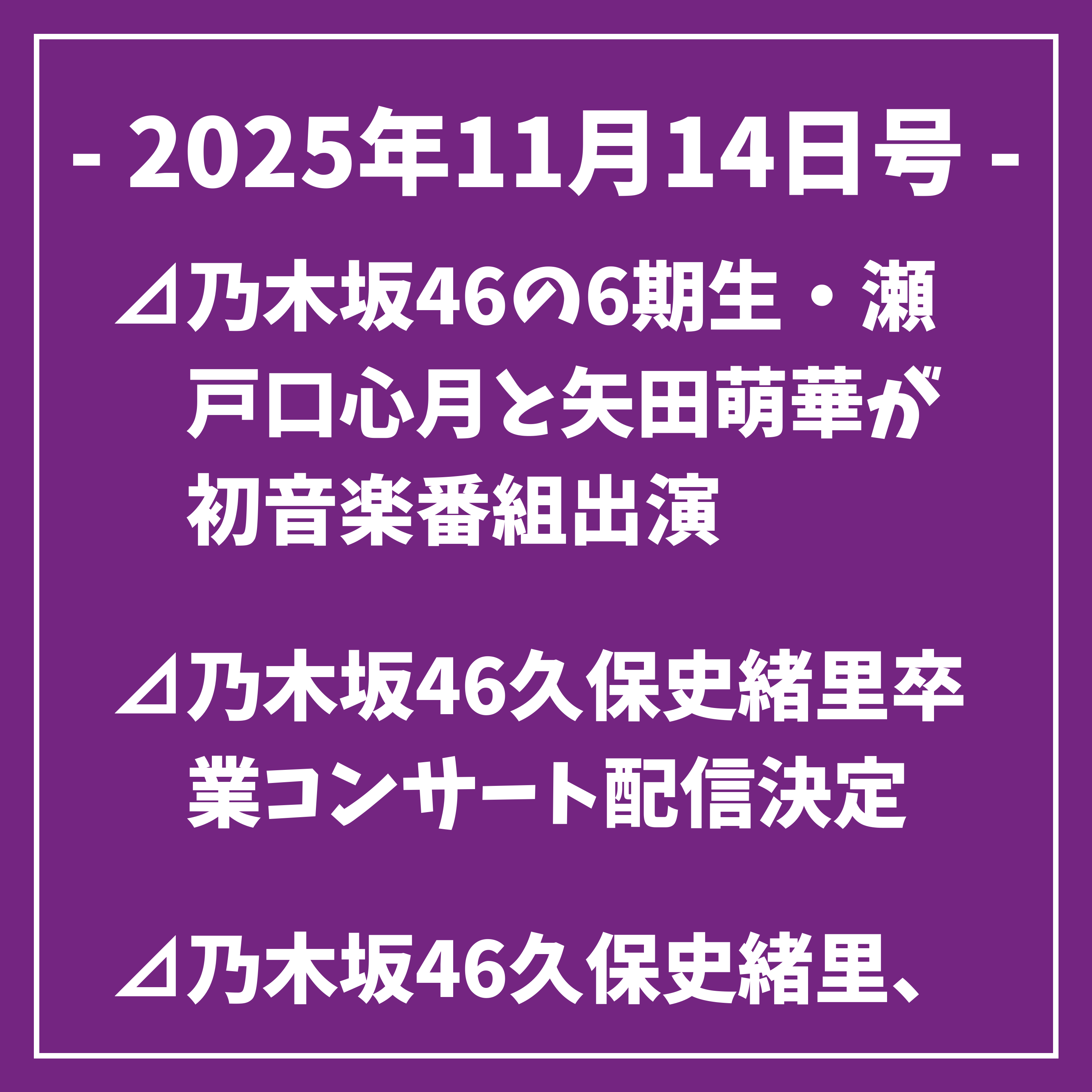 以上、本日の乃木坂46に関するトップニュースをお届けしました。