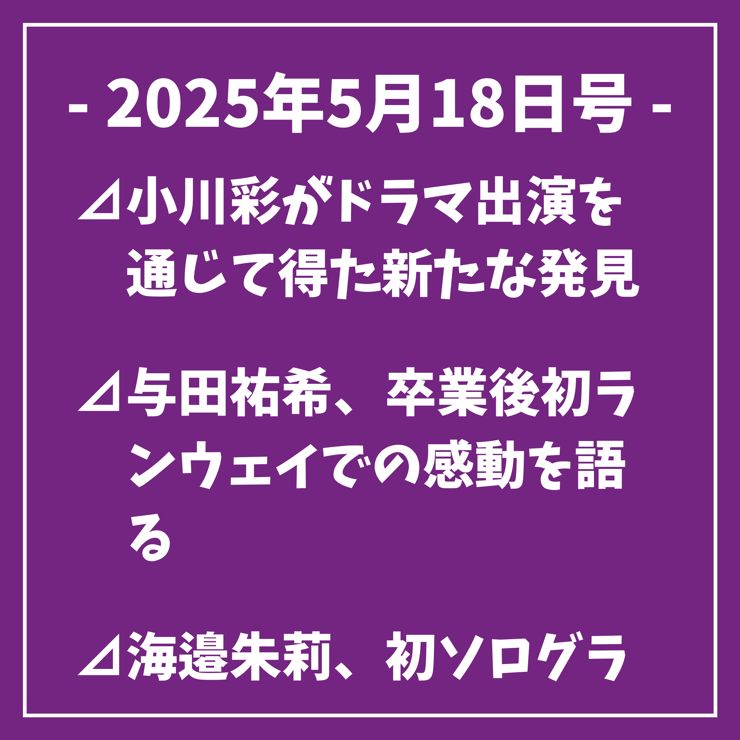 続いて本日5月18日の乃木坂46に関するスケジュールをお伝えします⊿