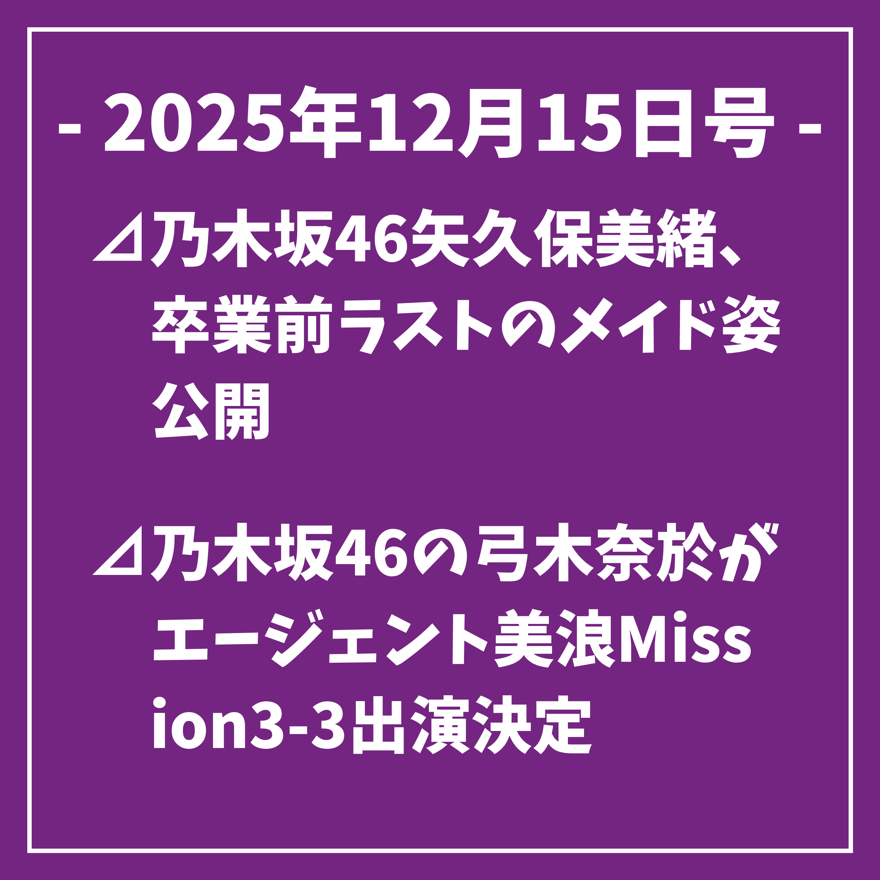 以上、本日の乃木坂46に関するトップニュースをお届けしました。