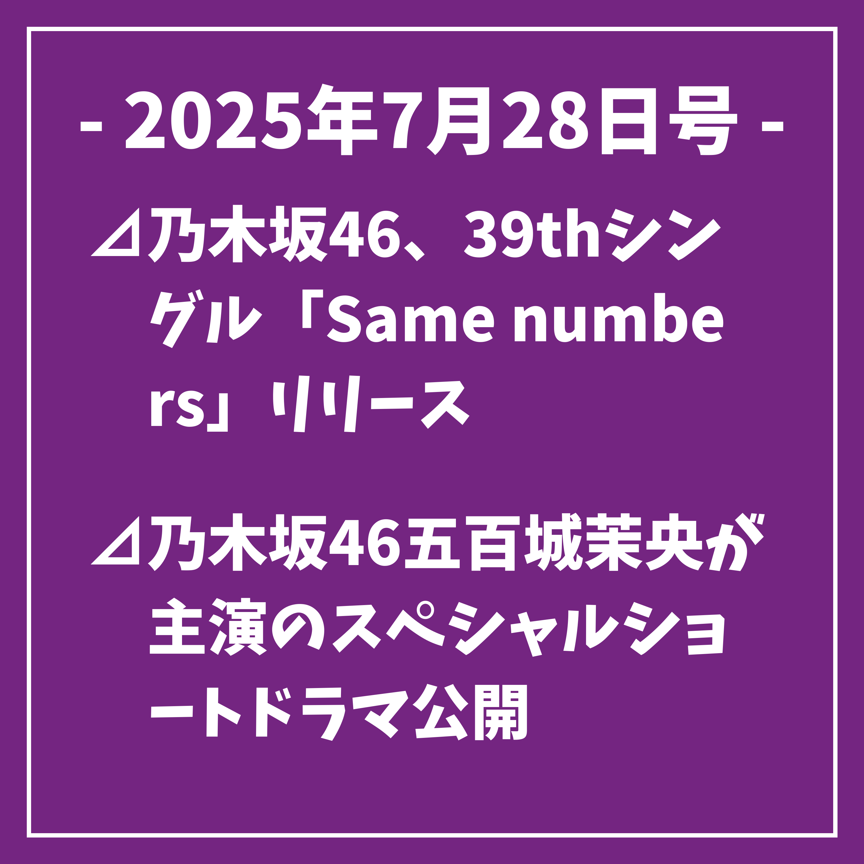乃木坂46、39thシングル「Same numbers」リリース⊿