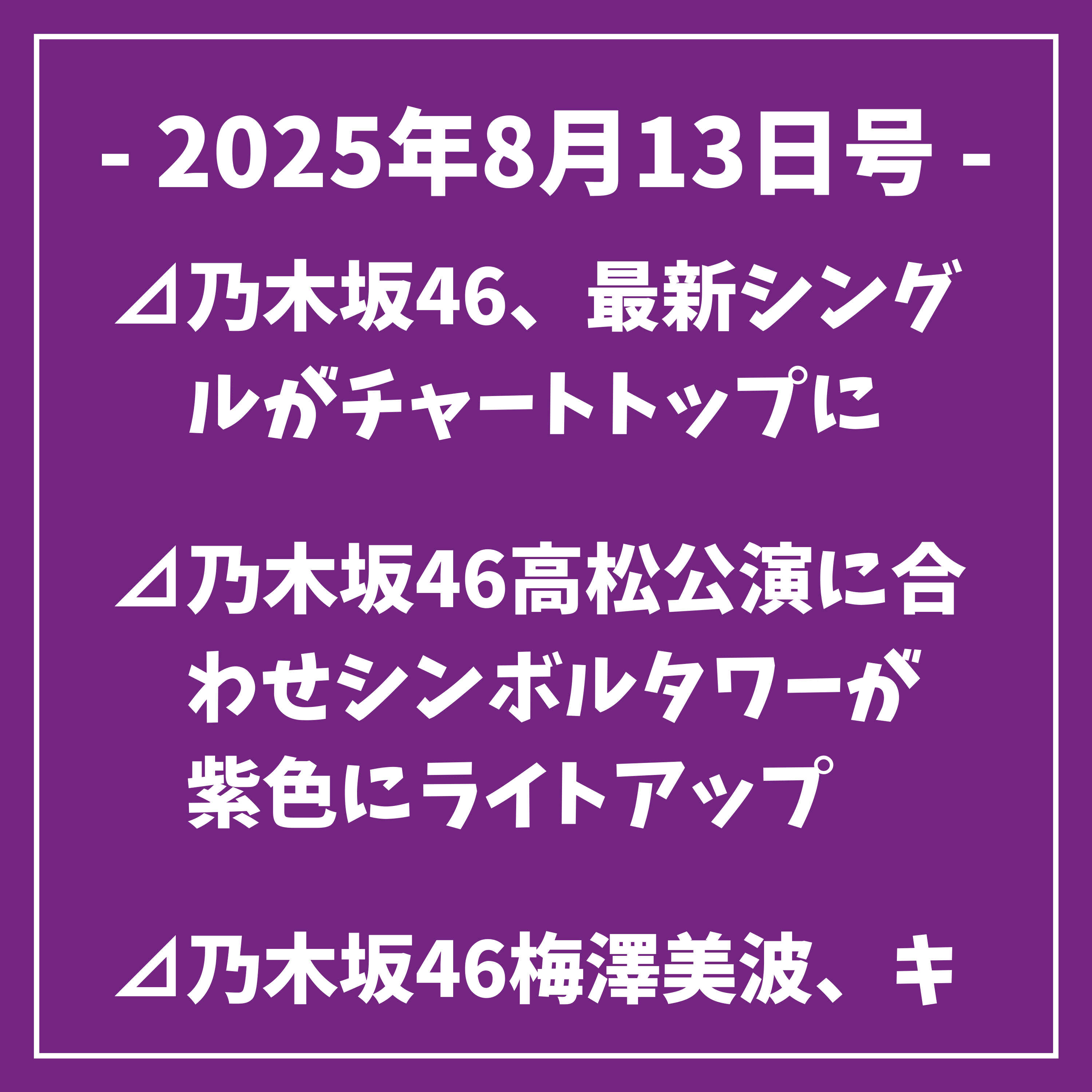 以上、本日の乃木坂46に関するトップニュースをお届けしました。
