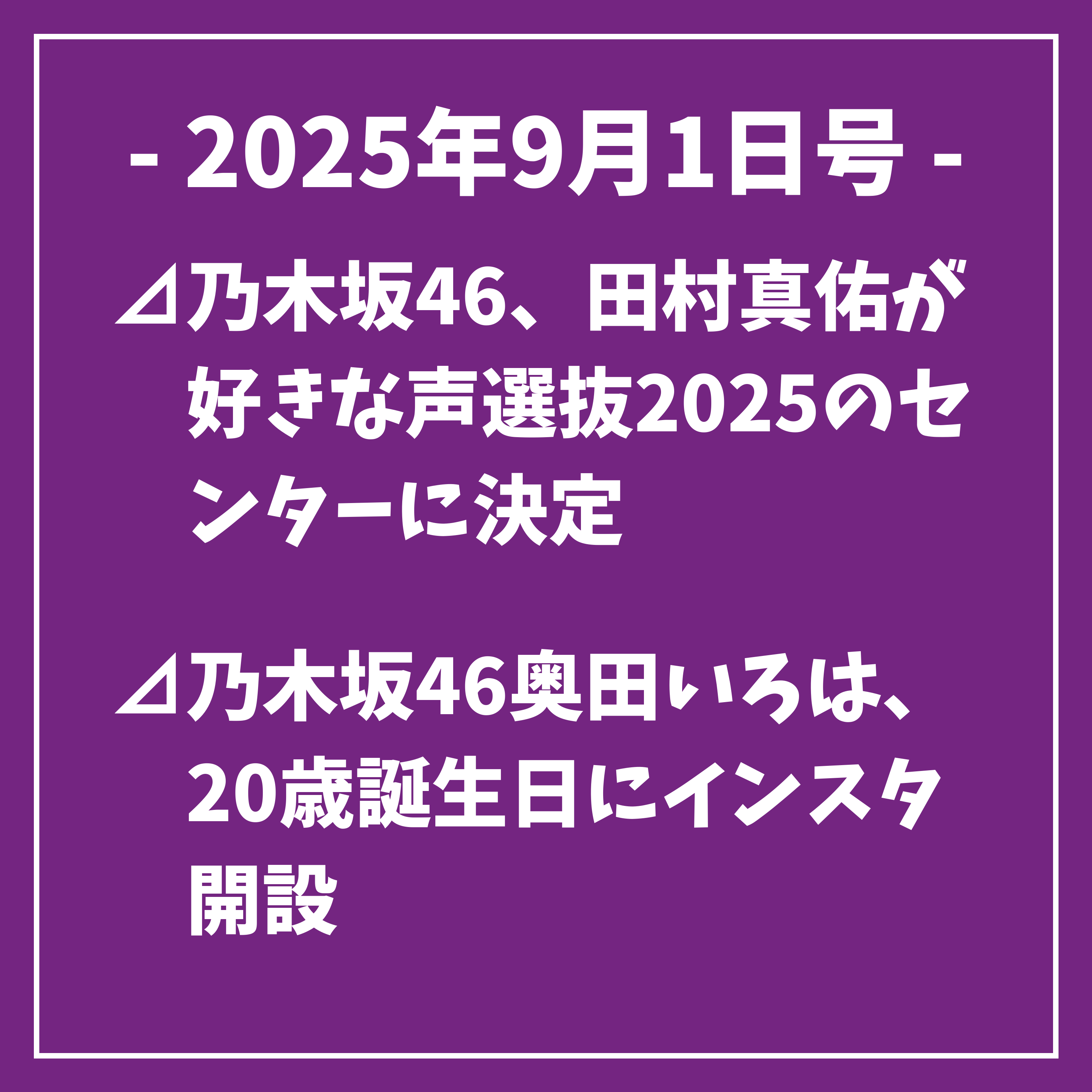 以上、本日の乃木坂46に関するその他のニュースをお届けしました。