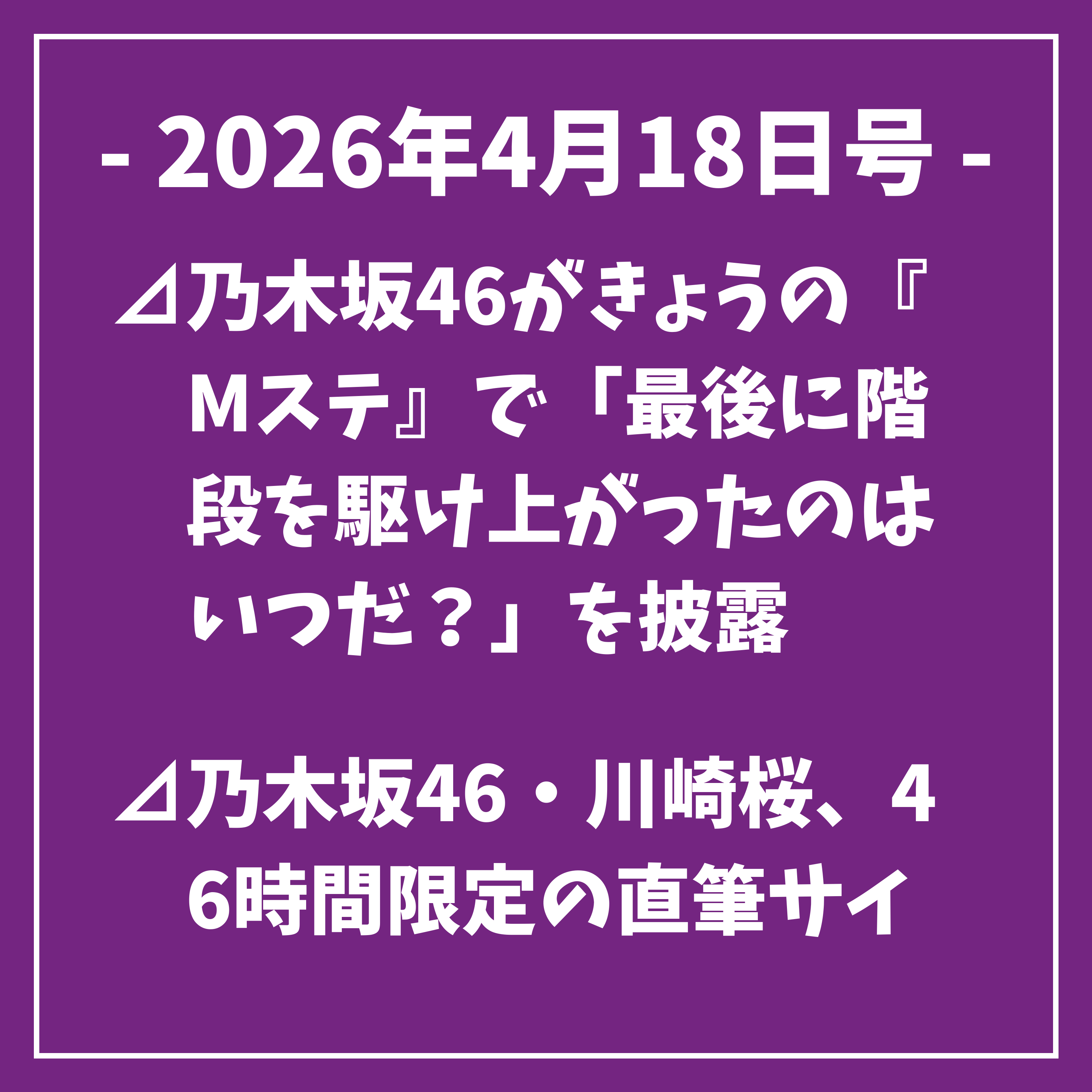 続いて、本日4月18日の乃木坂46に関するスケジュールをお伝えします。
