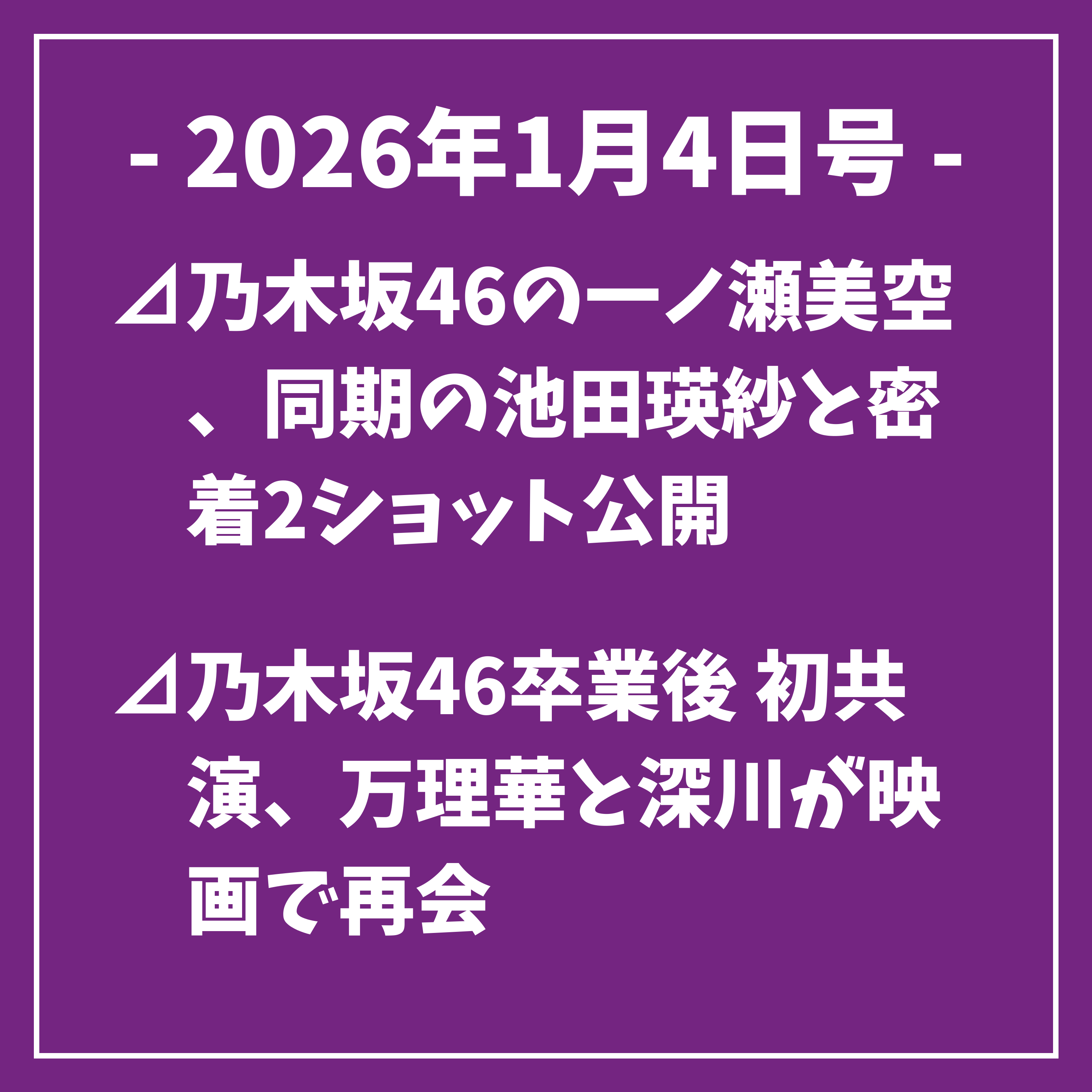 以上、本日の乃木坂46に関するトップニュースをお届けしました。