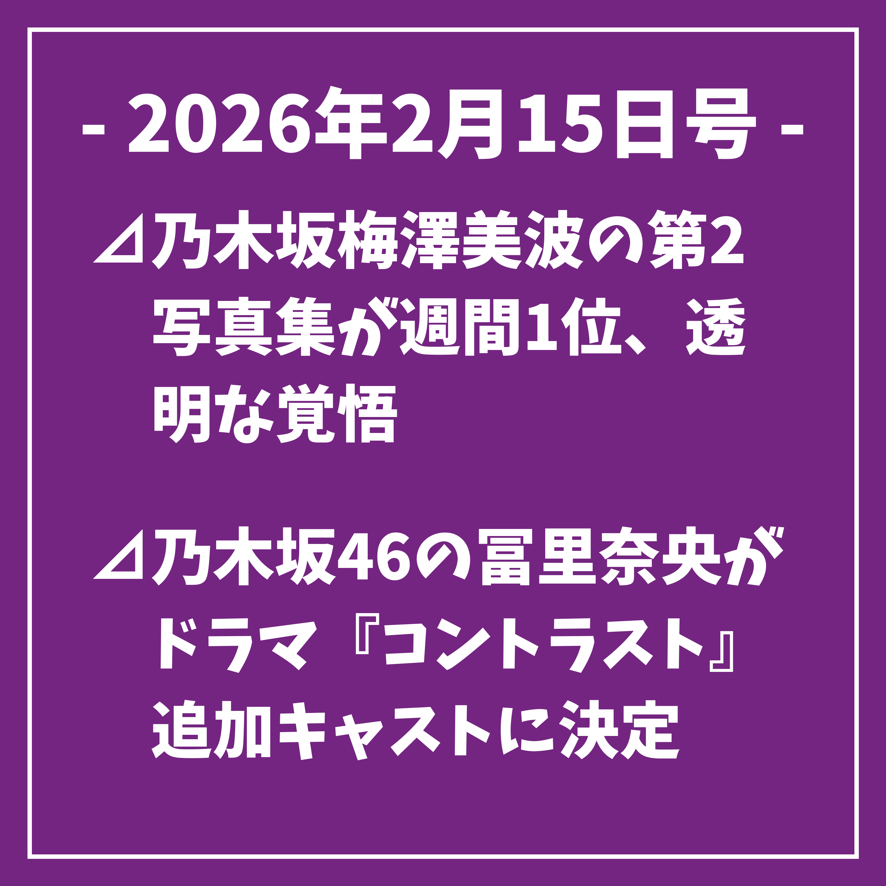 以上、本日の乃木坂46に関するトップニュースをお届けしました。