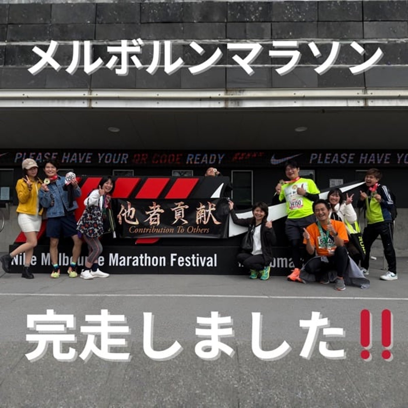 最後、みんなでね、ナイキのマークのとこで写真撮りましたけども、本当にこの仲間と一緒に走れてよかったなっていう人生初のね、マラソンと走れてよかったなというふうに思っております。