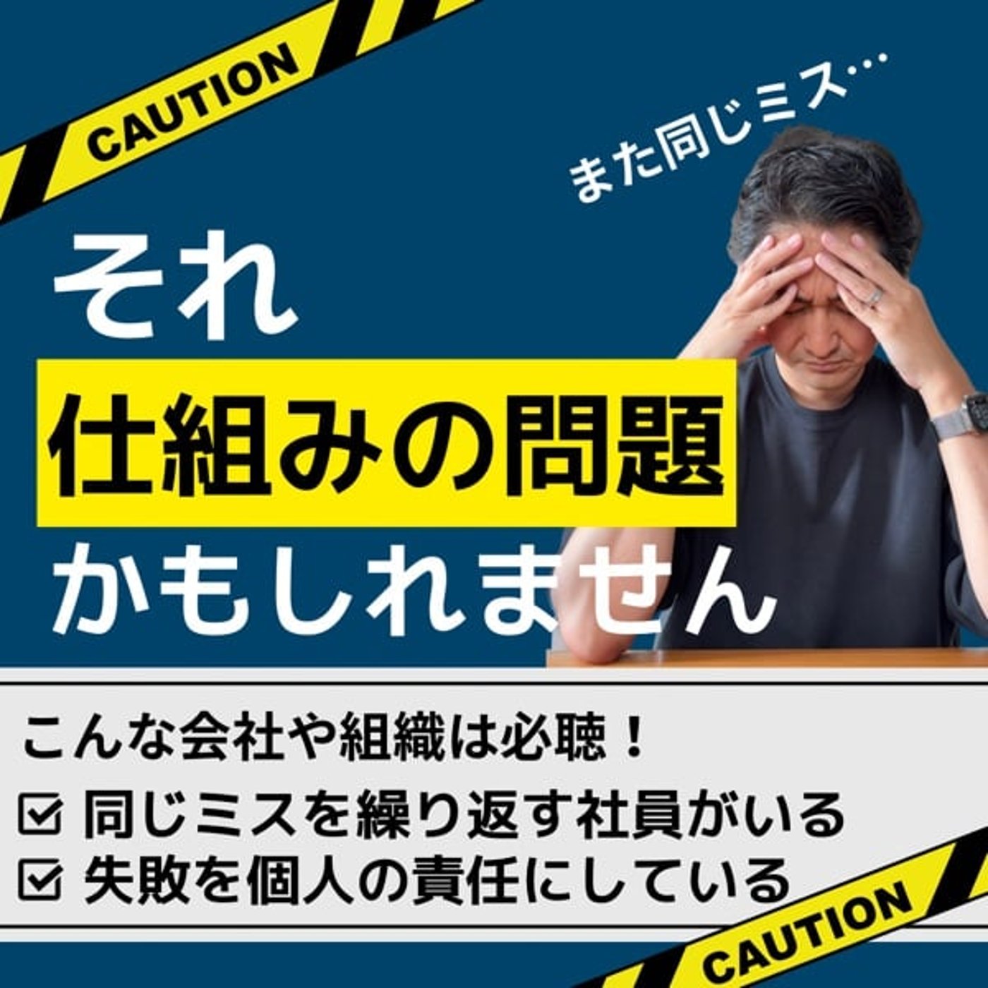 はい、ということで、今日のテーマでございますけども、えー、また同じミス、それ人のせいじゃなく、仕組みの問題かも、というテーマでお送りしたいと思います。