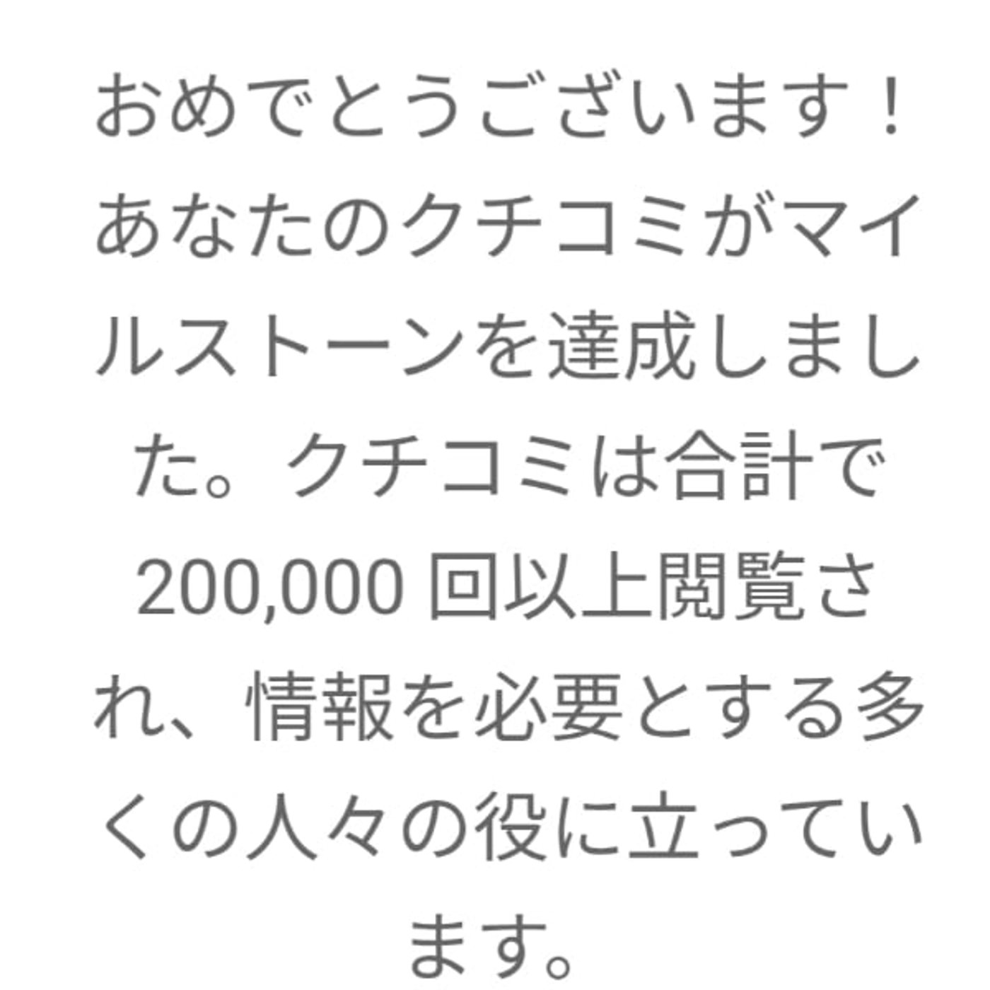 さっきですねGoogleからメールがピロンってきたのから、なんだろうなぁと思ってみたら あなたの一個の口コミが20万閲覧でめっちゃみんな参考になったって言ってるよっていう連絡が来て