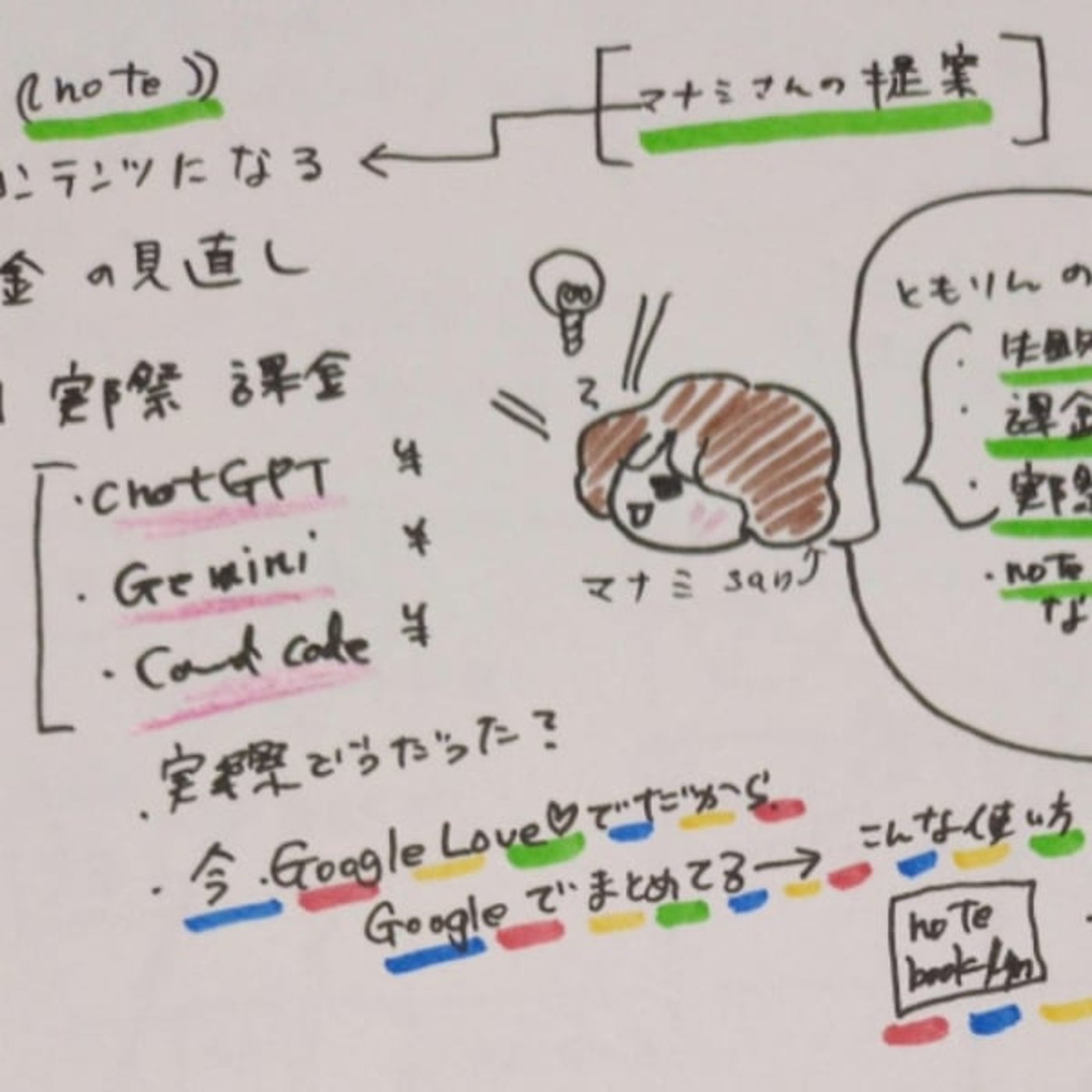昨日、こんさんのサロン、マナミさんのサロンで学んだことをアナログで描いて、気づきをまとめていました。