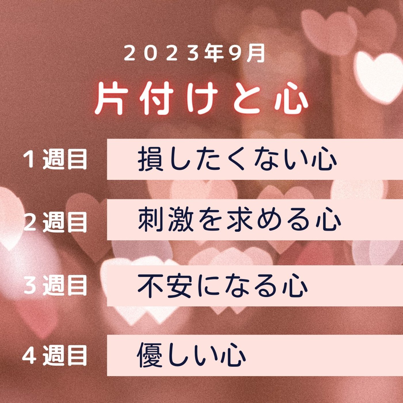 今月は片付けと心ということでお話ししております。